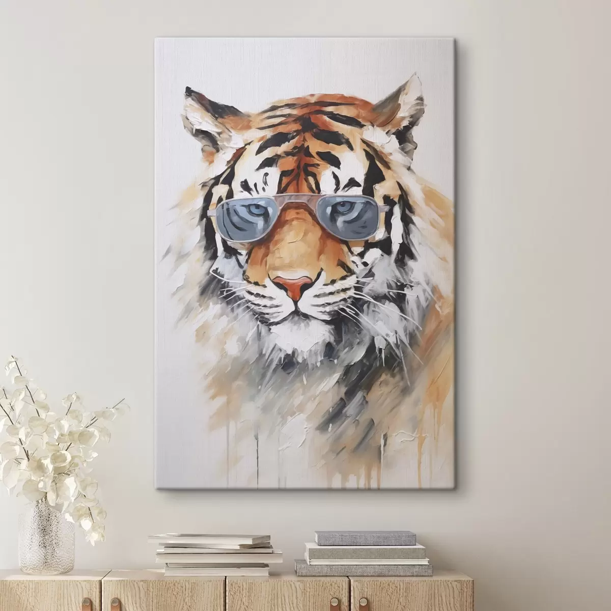 Schilderijen Tijger met bril imitatie schilderij s48319