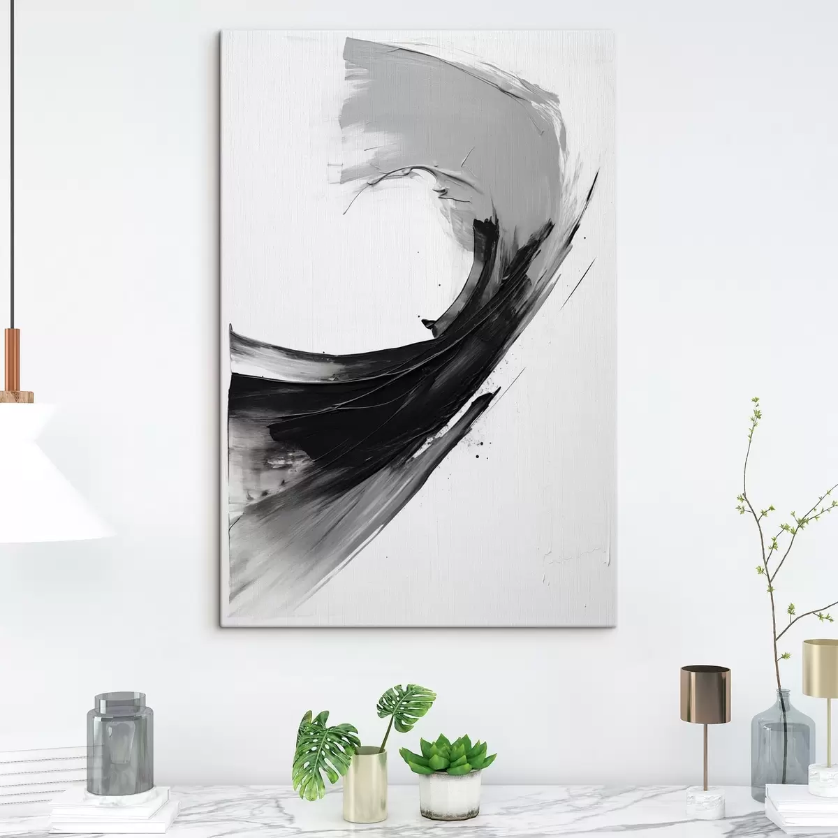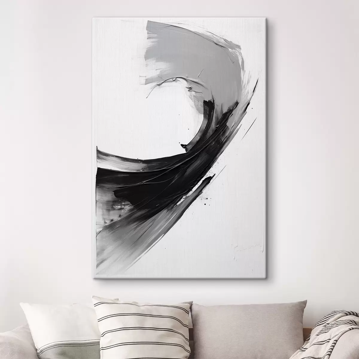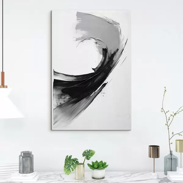 Schilderij Abstracte zwarte penseelstreek op een witte achtergrond Art. s48326