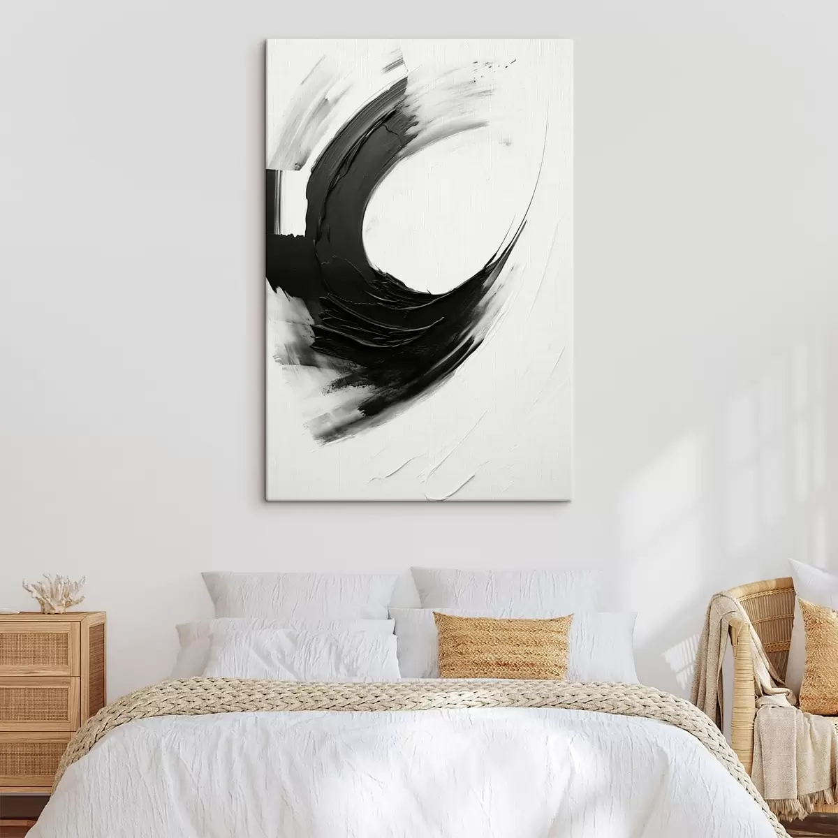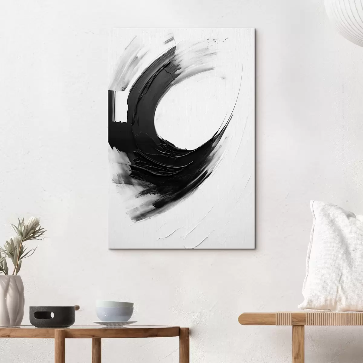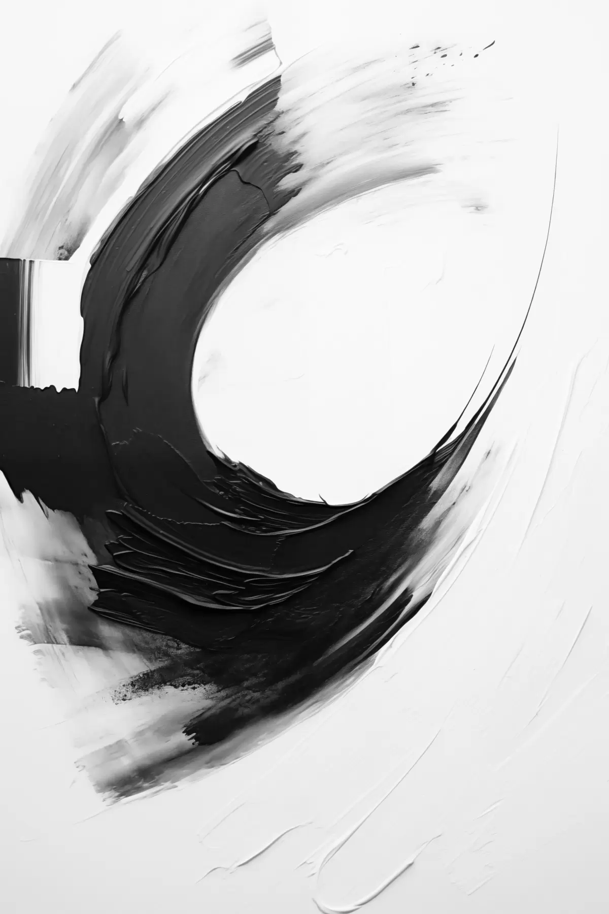 Schilderij Abstracte zwarte penseelstreek op een lichte achtergrond Art. s48340