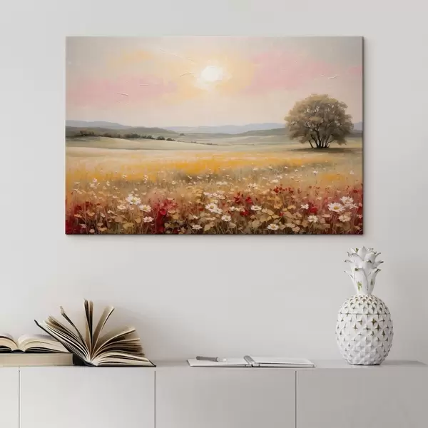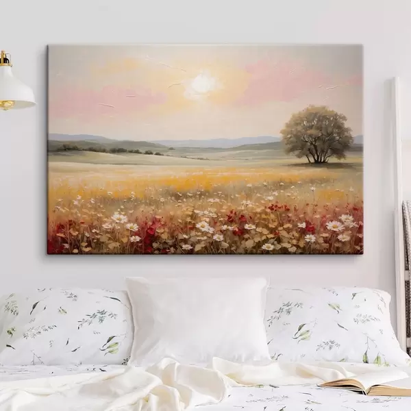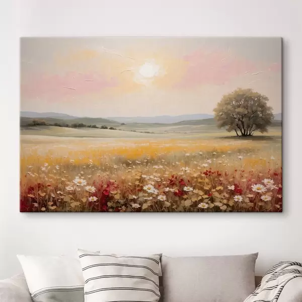 Schilderij Landschap met een bloemenveld en een boom aan de horizon Art. s48355