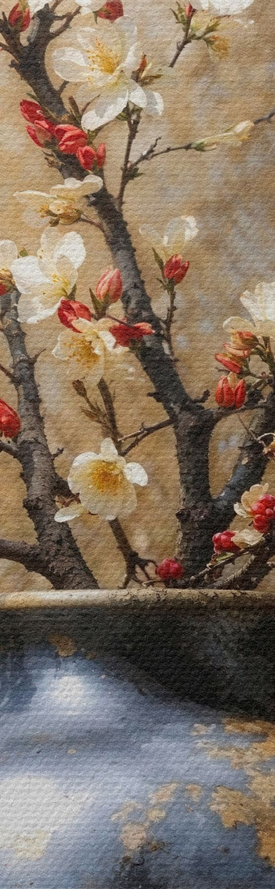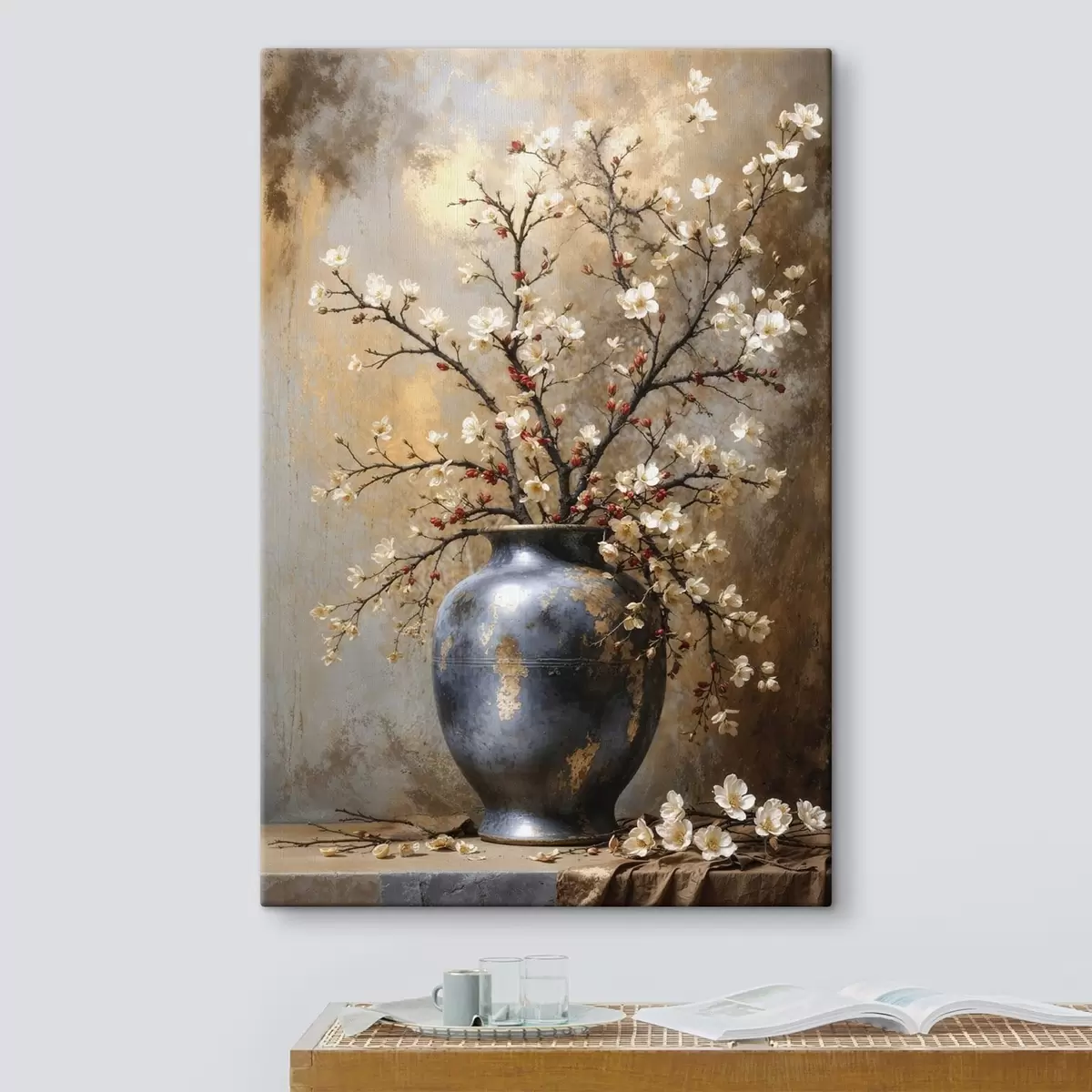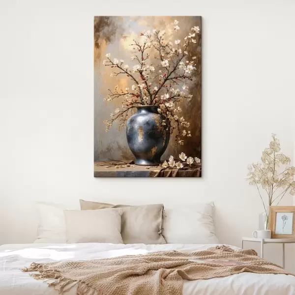 Schilderij Bloeiende takken in een vaas tegen een neutrale achtergrond Art. s48361