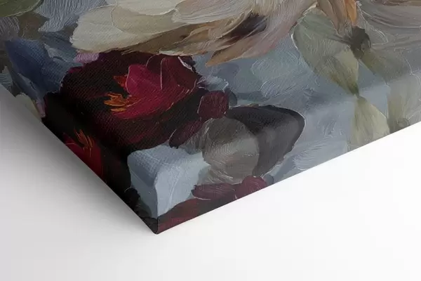 Er zijn drie soorten materiaal te bestellen: Economic Canvas - een dicht en duurzaam materiaal voor digitaal printen, identiek aan schildersdoek, waterdicht oppervlak, realistische weergave van details, materiaal met gemiddelde korrel. Premium Canvas - de textuur lijkt op die van schildersdoek (verweven kleine draden). Zachte, gedetailleerde reproductie van de afbeelding op een mat oppervlak. Eco-Premium - hoogwaardige 100% katoenen stof. Dankzij de natuurlijke katoenvezels is het materiaal duurzaam en slijtvast. Uitstekende kleurweergave en detail.