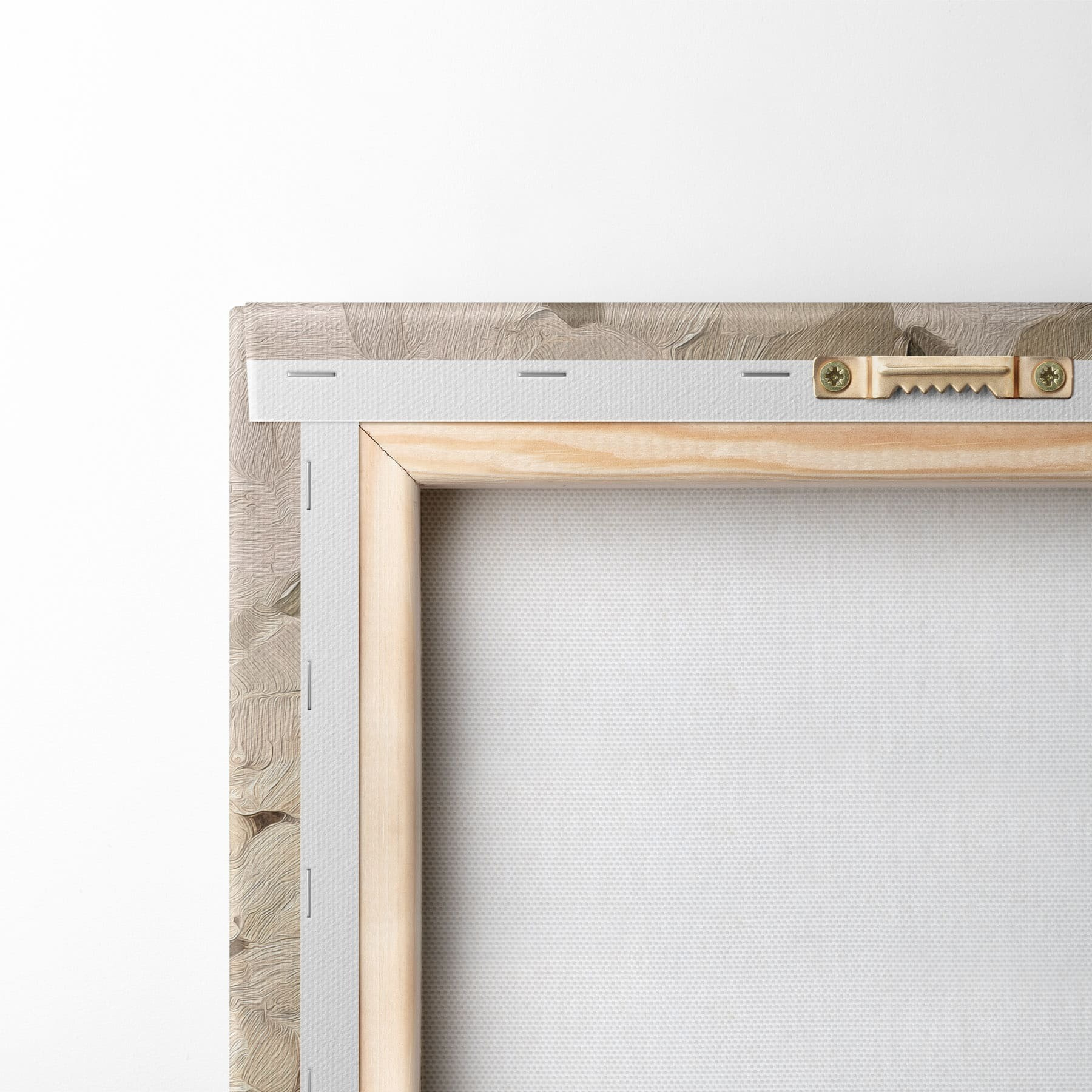 Om het doek op te spannen op spielatten zonder de afbeelding te beschadigen, gebruiken we gespiegeld beeld.