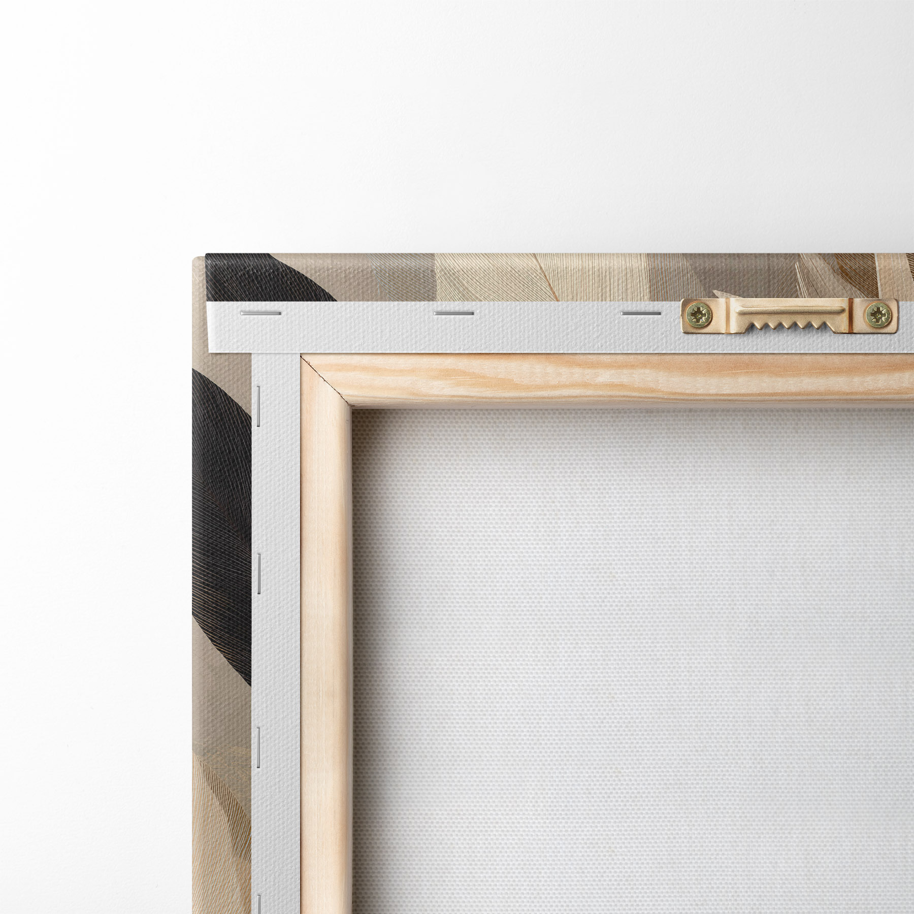 Om het doek op te spannen op spielatten zonder de afbeelding te beschadigen, gebruiken we gespiegeld beeld.