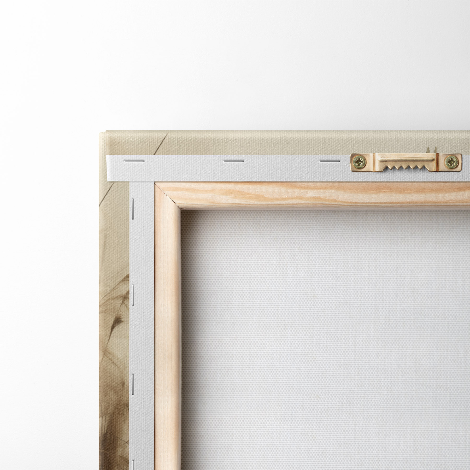 Om het doek op te spannen op spielatten zonder de afbeelding te beschadigen, gebruiken we gespiegeld beeld.