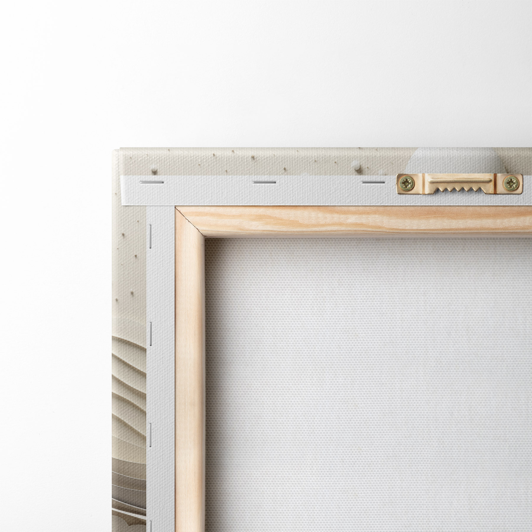 Om het doek op te spannen op spielatten zonder de afbeelding te beschadigen, gebruiken we gespiegeld beeld.
