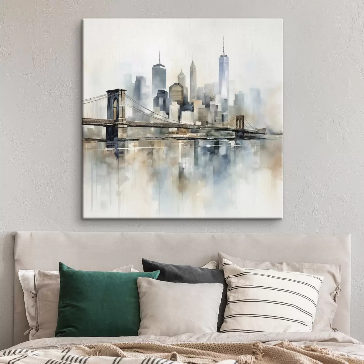 Schilderijen Abstracte stadsskyline, in aquarelstijl s48405