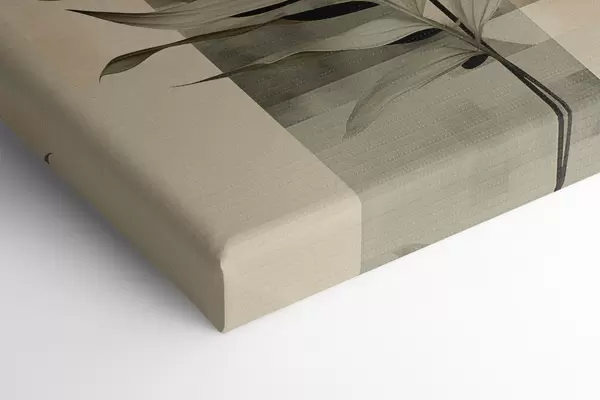 Schilderij Een donkergroene plant met abstracte geometrische vormen en aquarelachtige texturen in beige en groen Art. s48410