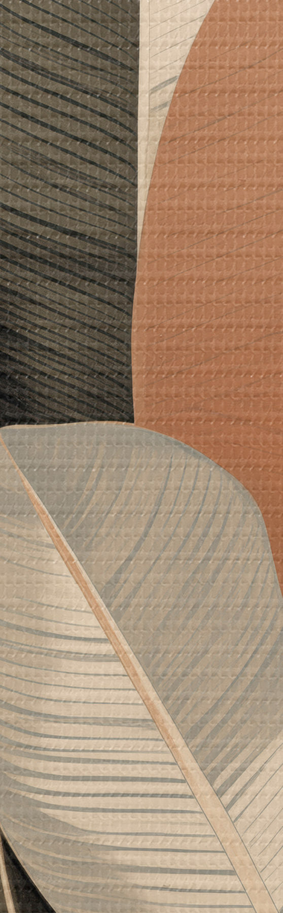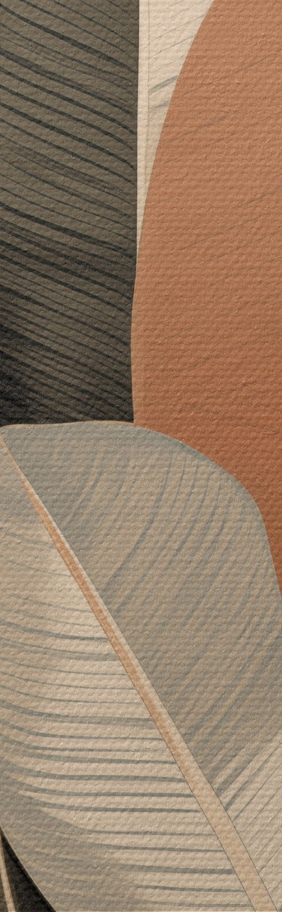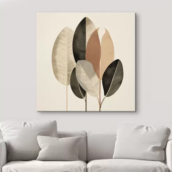 Schilderij Hoge planten met ovale bladeren in ingetogen tinten en abstracte rechthoekige vormen Art. s48414