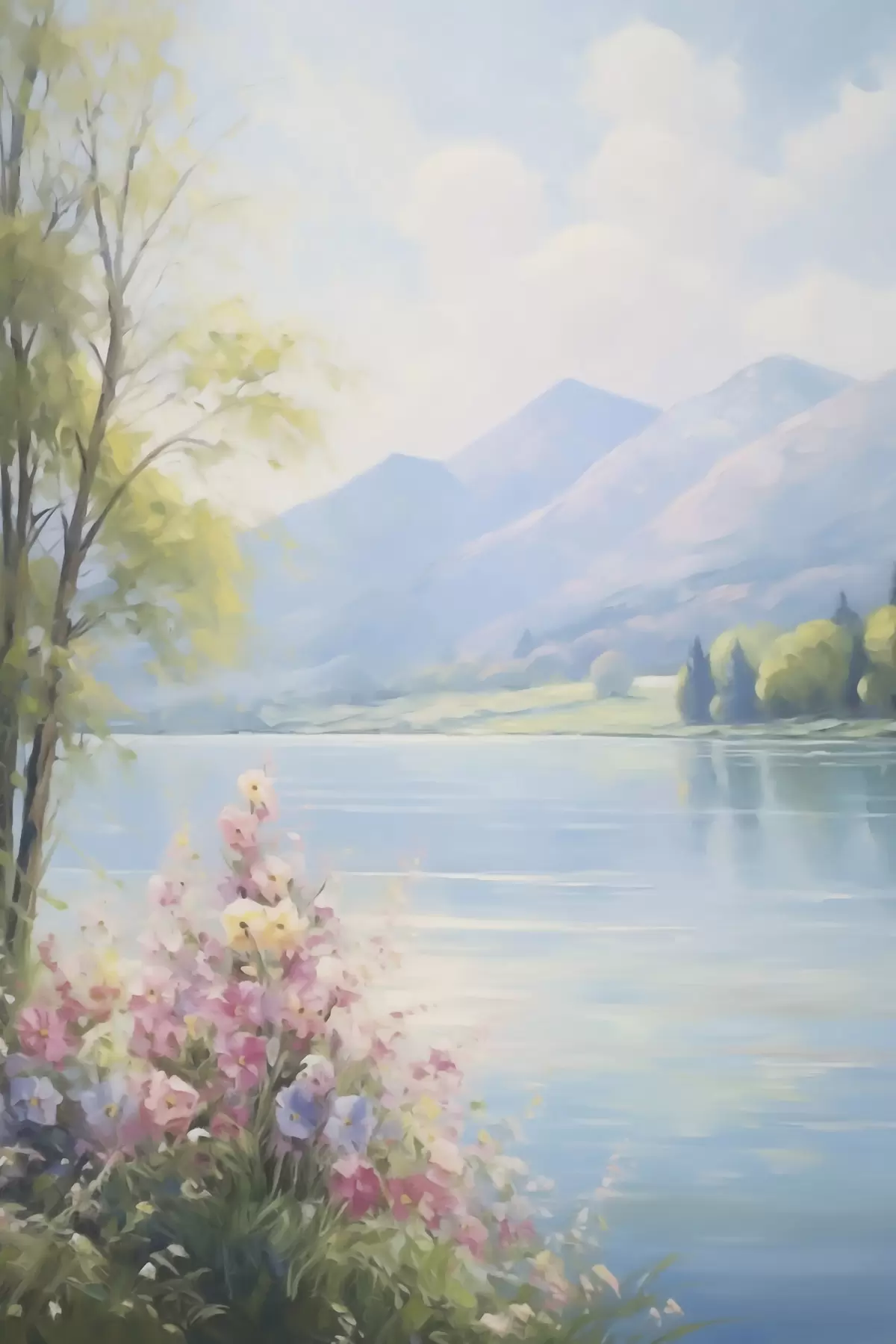 Schilderijen Landschapsschilderij met een meer s48423