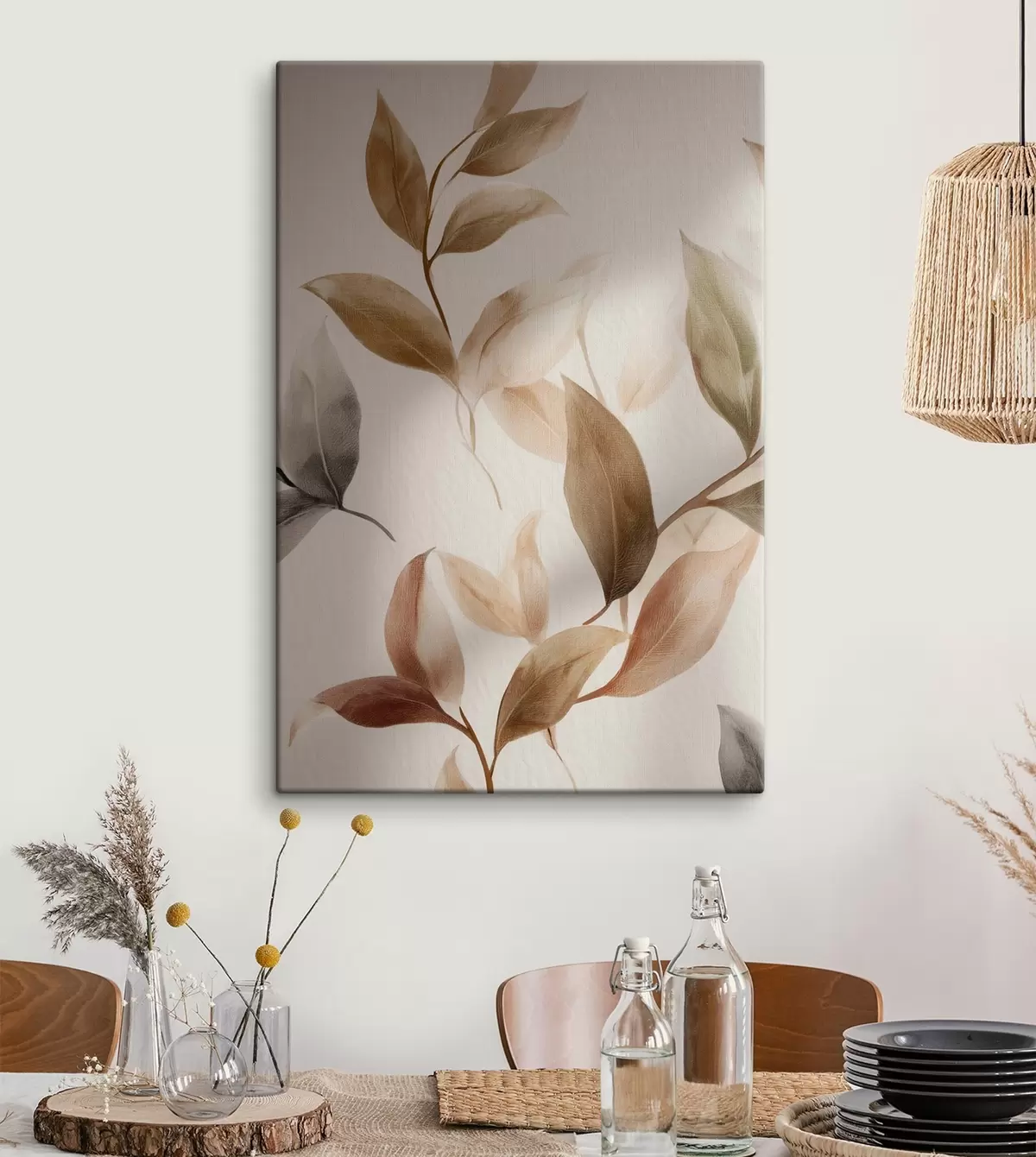 Schilderij Schilderen met bladeren, beige takken, minimalisme, Scandinavische stijl Art. s48479