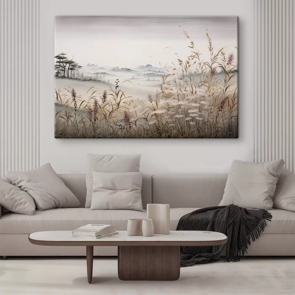Schilderij Mistig landschap met grassen Art. s48481