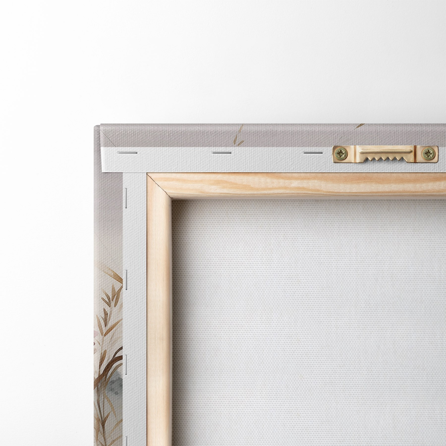 Om het doek op te spannen op spielatten zonder de afbeelding te beschadigen, gebruiken we gespiegeld beeld.