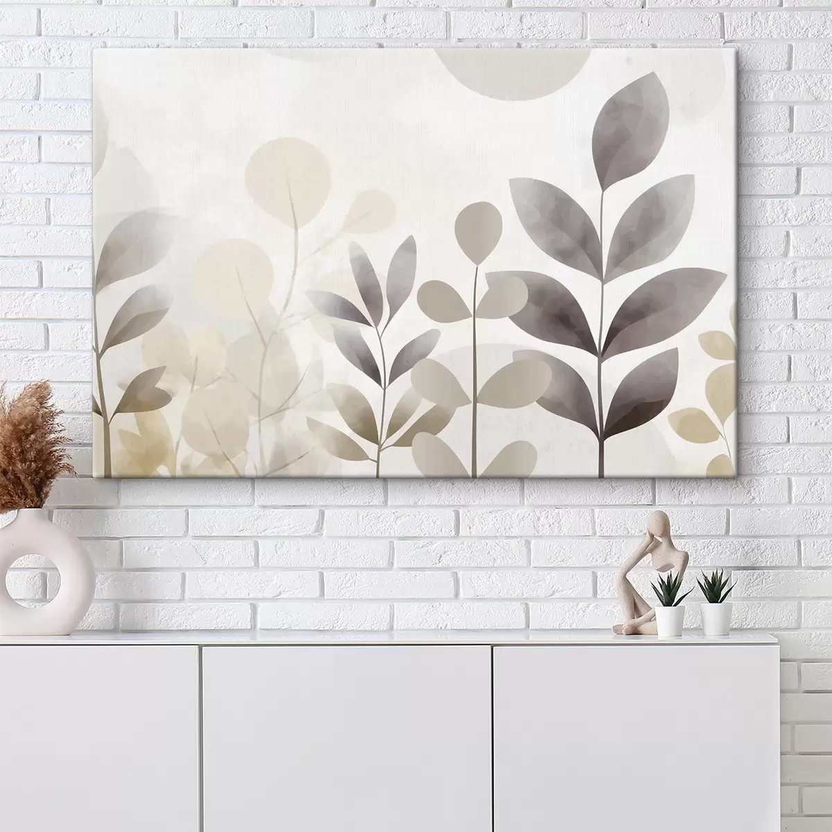 Schilderij Beige en grijze bladsilhouetten, minimalisme Art. s48487