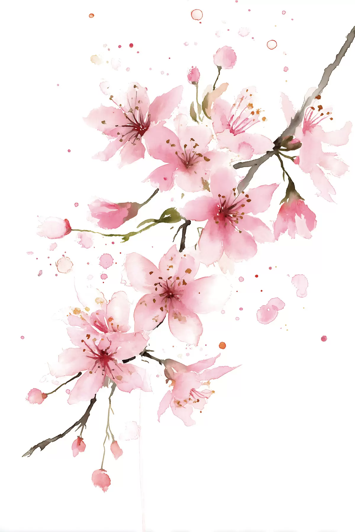 Schilderijen een bloeiende abrikozentak in aquarelstijl s48522