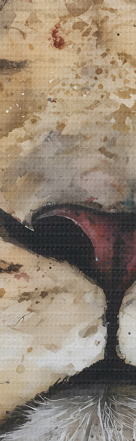 Het schilderij kan voorzichtig worden schoongeveegd met een droge zachte doek of spons; het wordt niet aanbevolen om natte producten te gebruiken. Het gebruik van een vochtige spons is alleen toegestaan als het schilderij gevernist is.