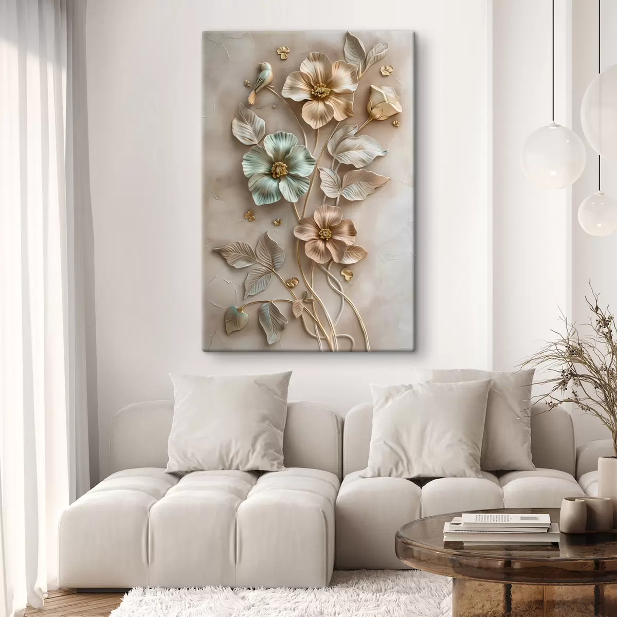 Schilderij een verfijnd decoratief arrangement van bloemen en bladeren Art. s48527