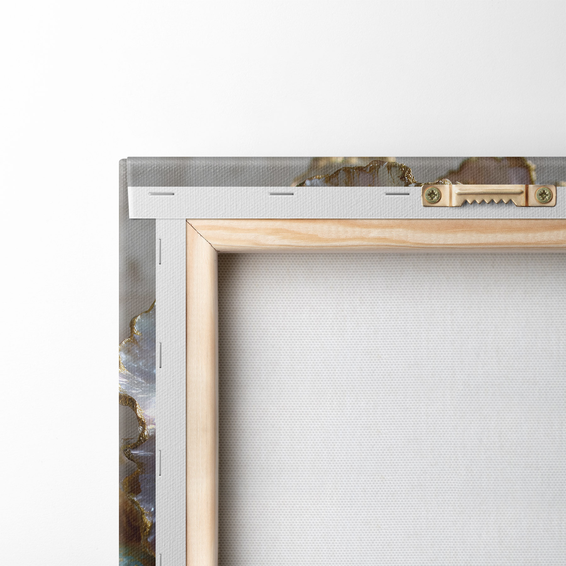 Om het doek op te spannen op spielatten zonder de afbeelding te beschadigen, gebruiken we gespiegeld beeld.