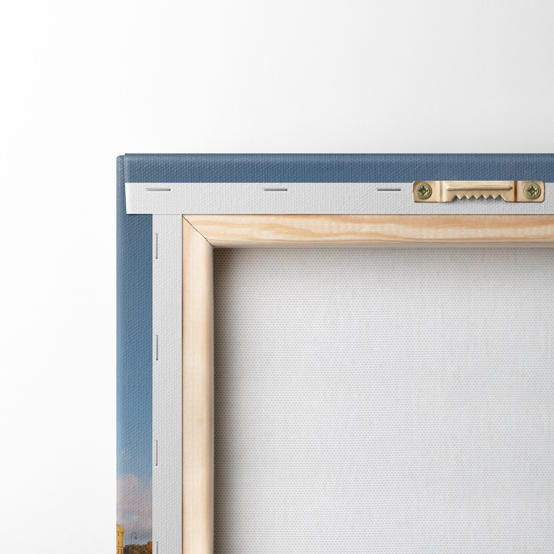 We verkopen foto's op spieraam - dat is een houten frame waarop het doek is opgespannen. Deze foto hoef je niet in te lijsten; je kunt hem direct aan de muur hangen.