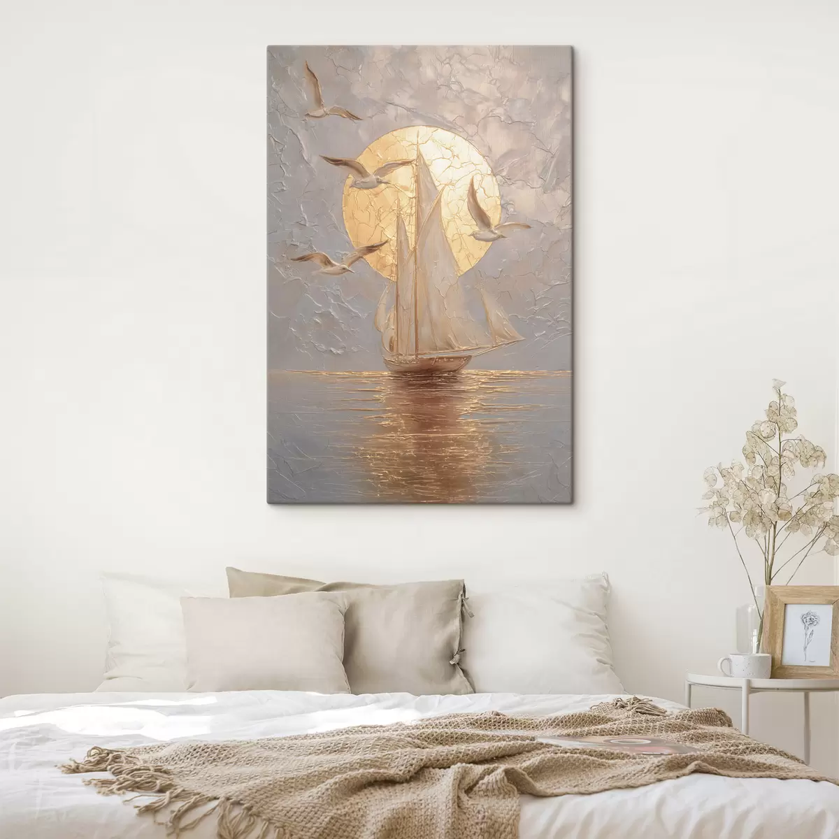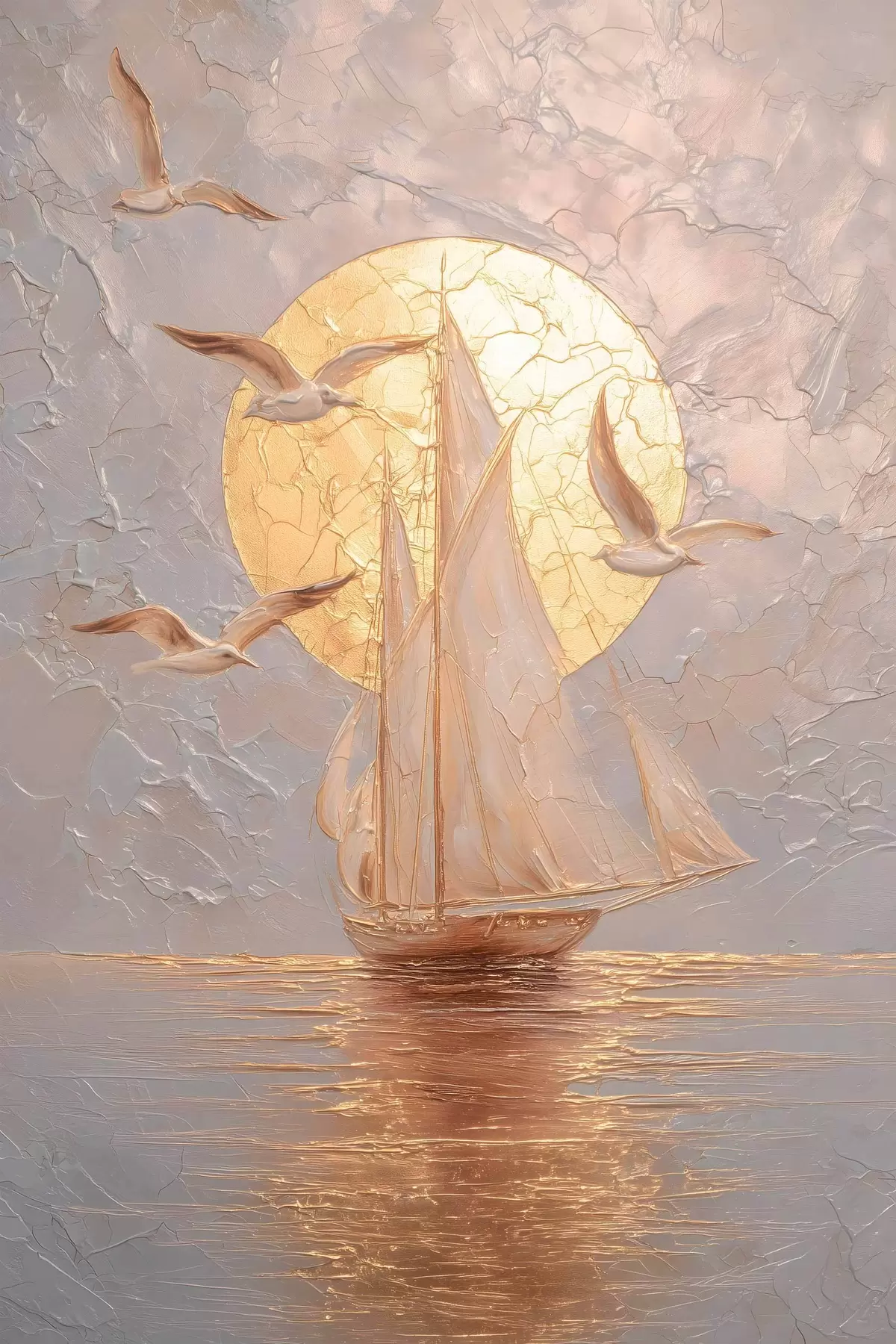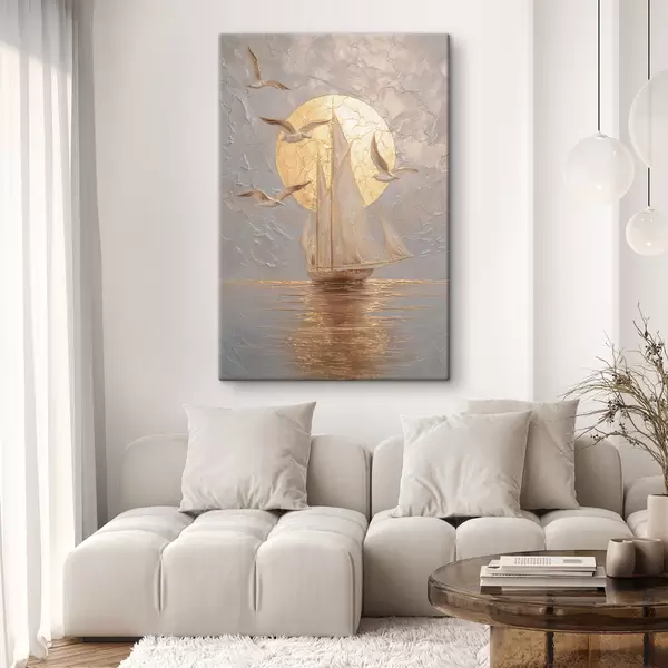 Schilderij een schip bij zonsondergang in impasto-stijl Art. s48556