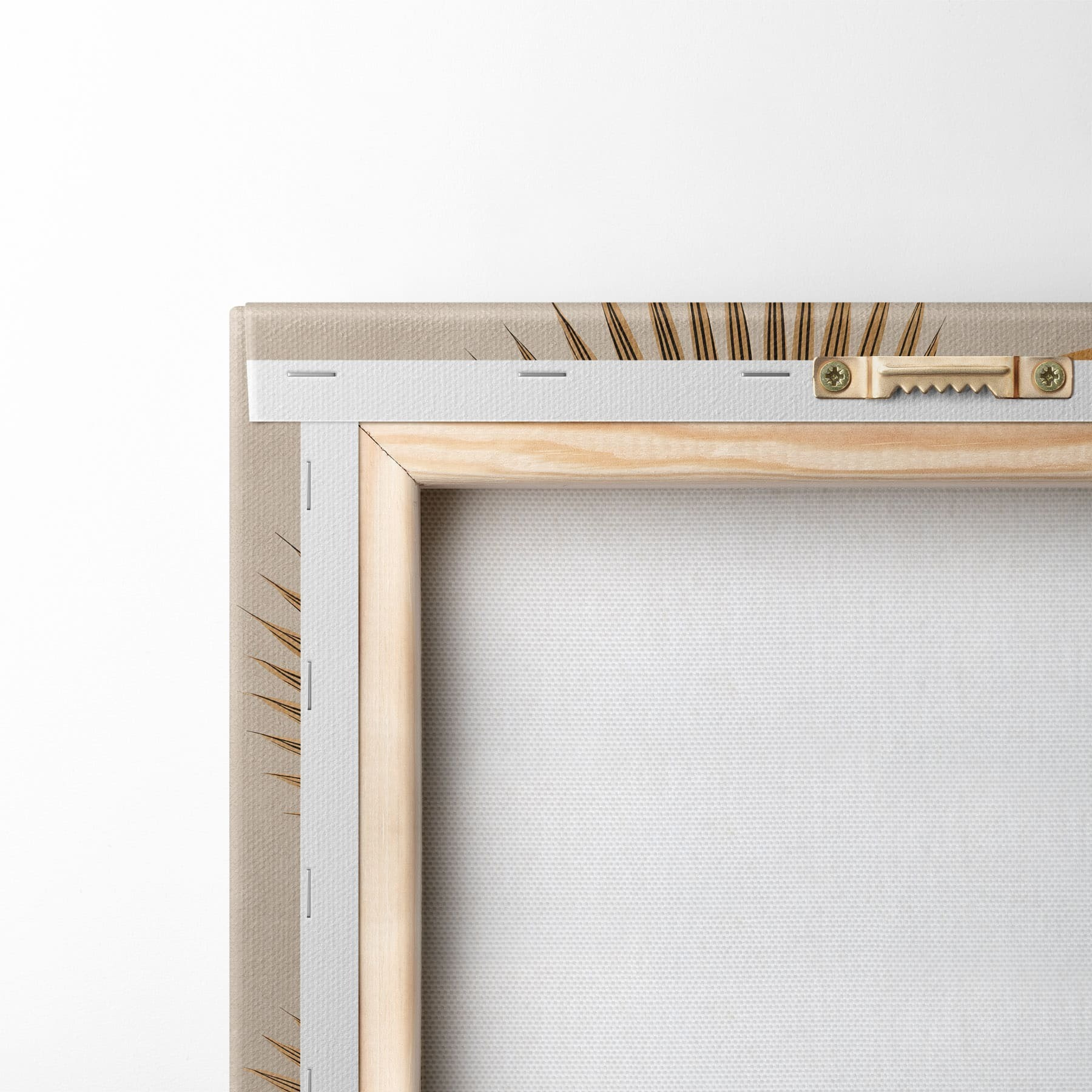 Om het doek op te spannen op spielatten zonder de afbeelding te beschadigen, gebruiken we gespiegeld beeld.
