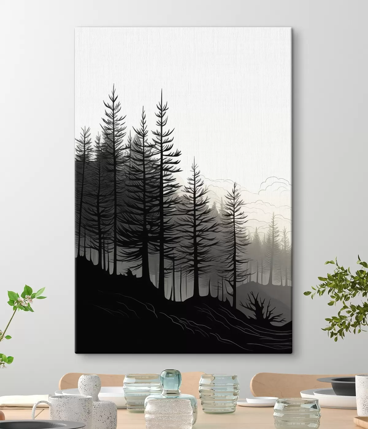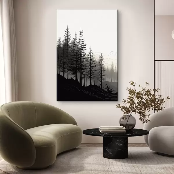 Schilderij Mistig bos, zwart-wit landschap Art. s48573