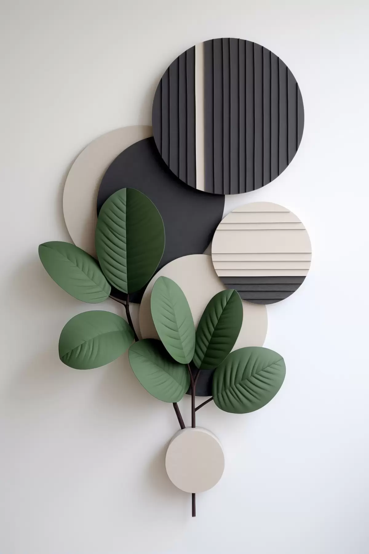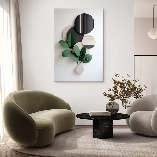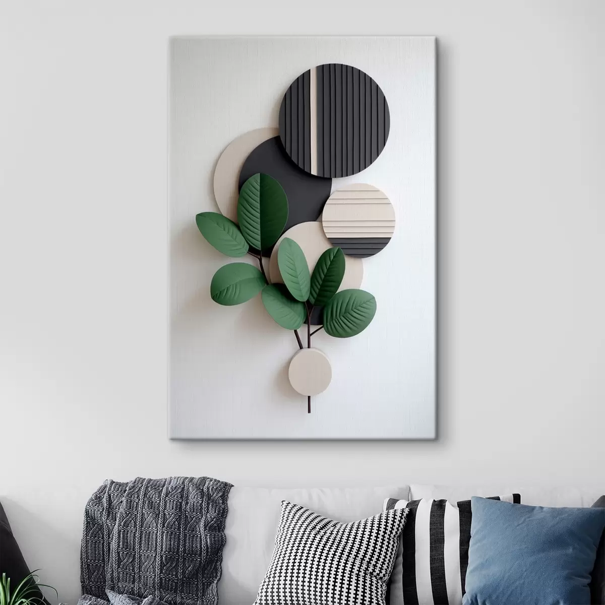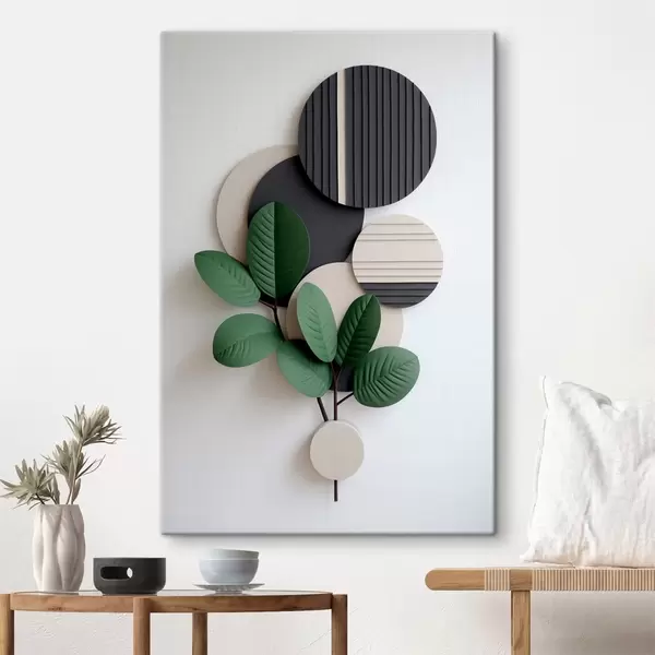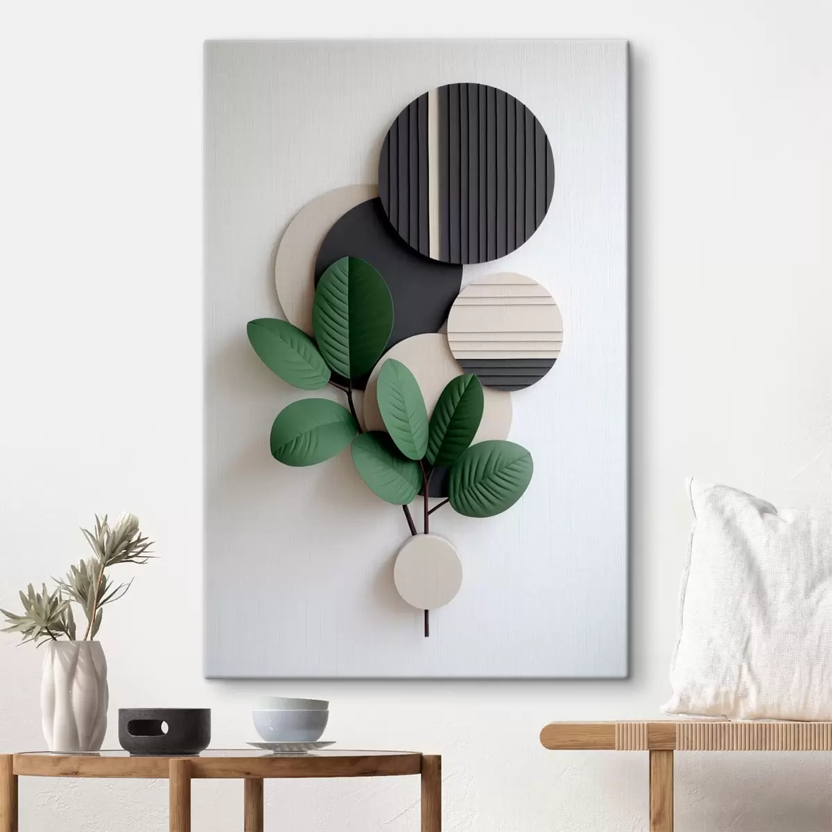 Schilderijen Groene bladeren met ronde, gestructureerde elementen s48603