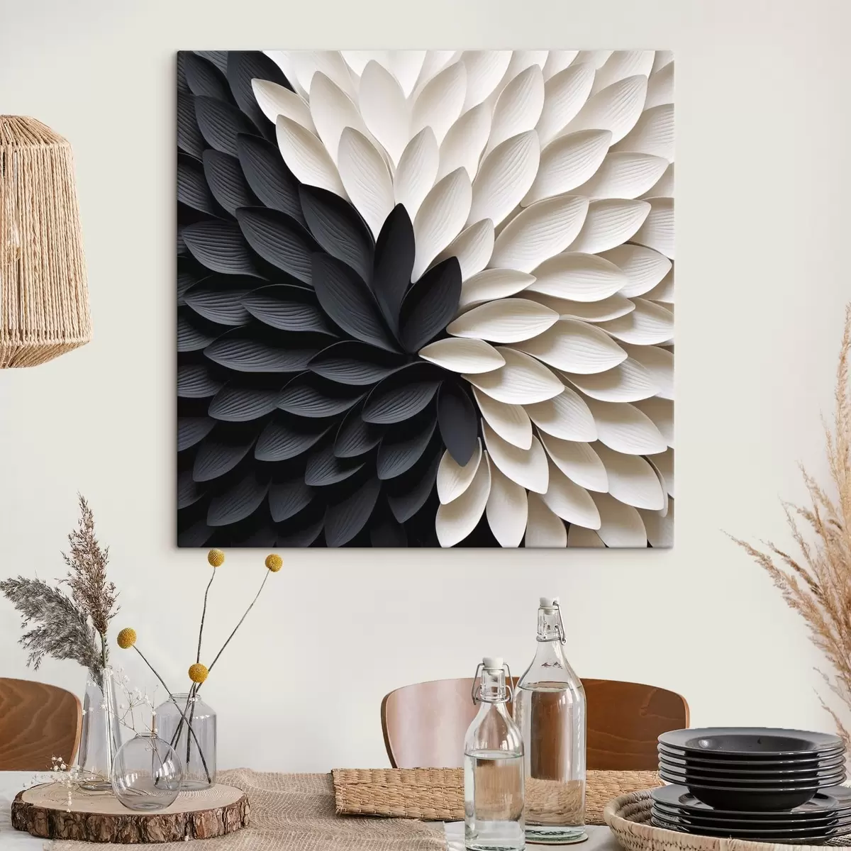 Schilderij Contrasterende lichte en donkere bloemblaadjes in de vorm van een bloem Art. s48604