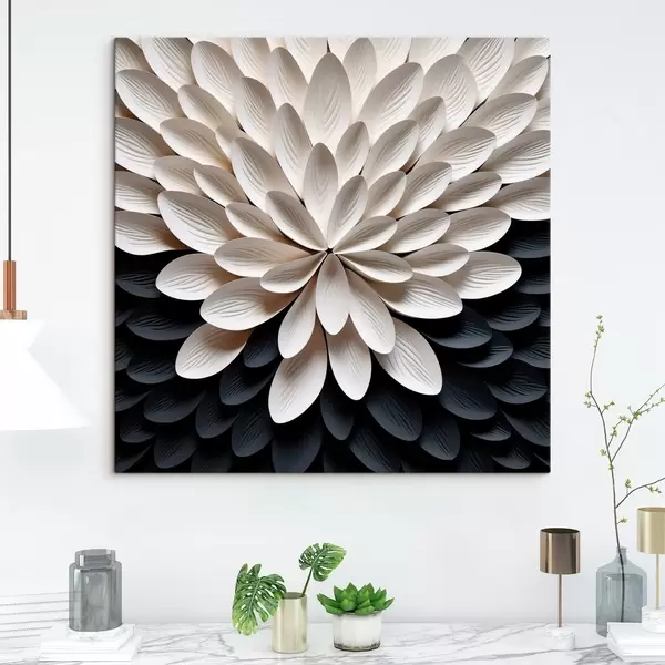 Schilderij Abstracte bloem met vele licht gelaagde bloemblaadjes Art. s48605