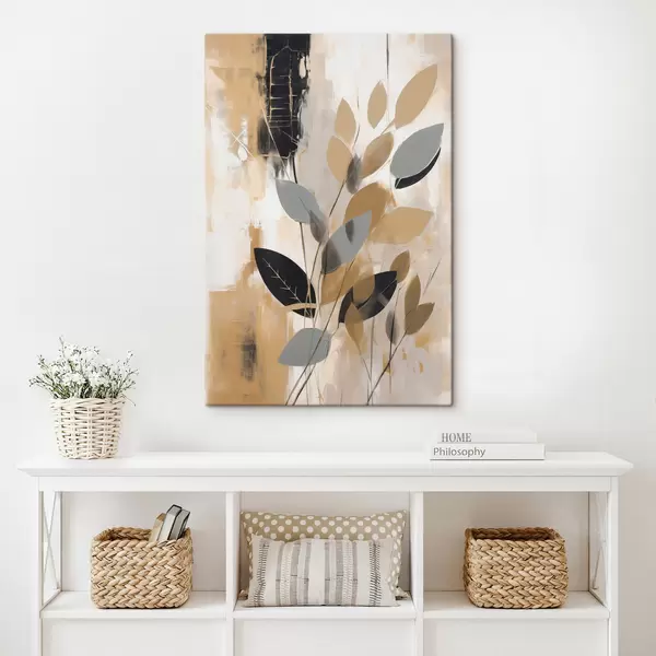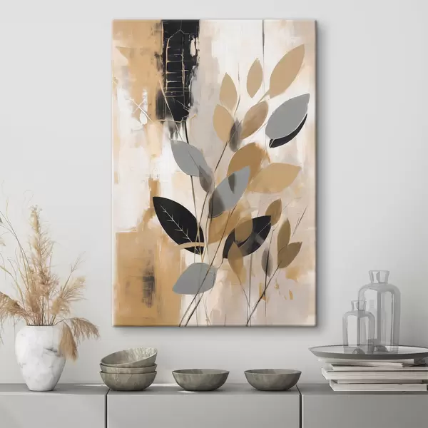 Schilderijen Een abstractie met een tak met bladeren s48609