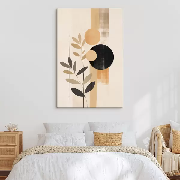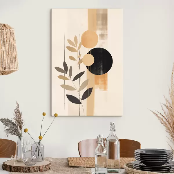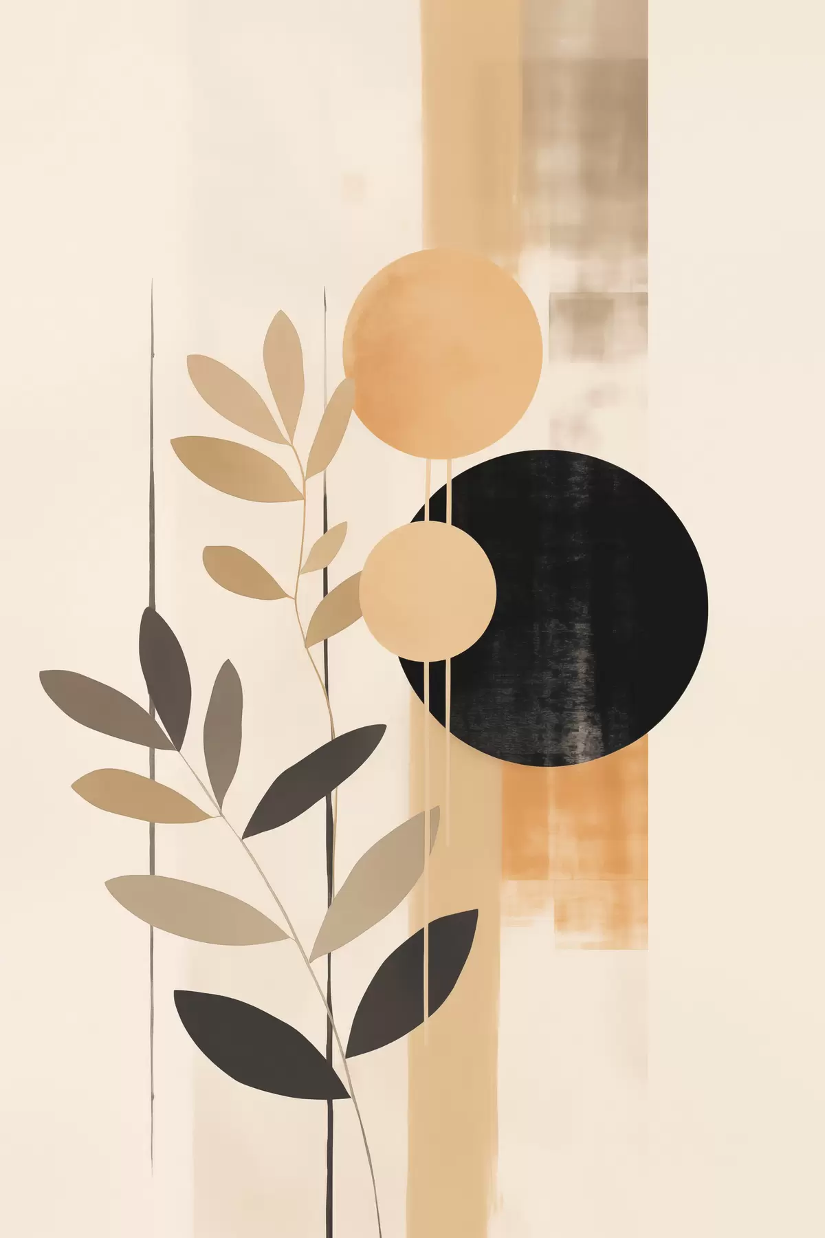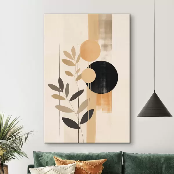 Schilderij Een abstracte compositie met bladeren en cirkels Art. s48613