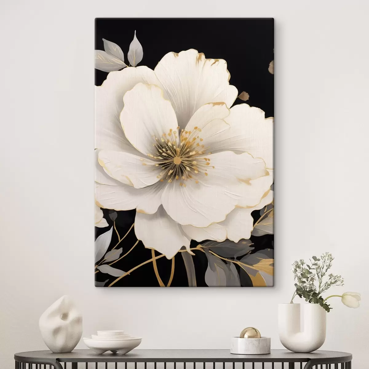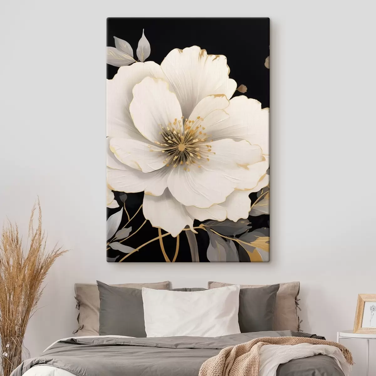 Schilderijen Witte bloemen op een donkere achtergrond s48633