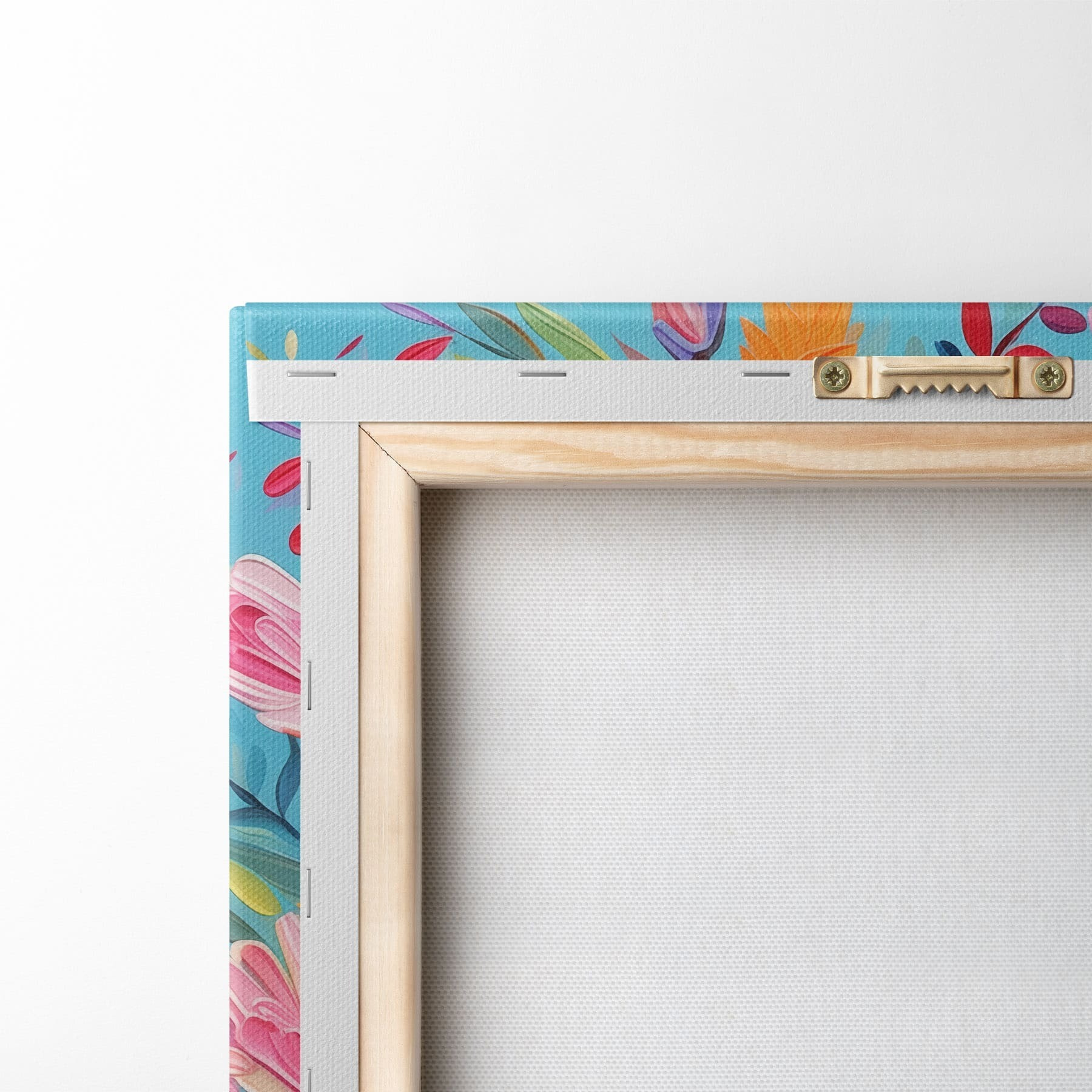 Het schilderij kan direct na ontvangst worden opgehangen. Het schilderij wordt opgespannen op een 2 cm breed houten spieraam.