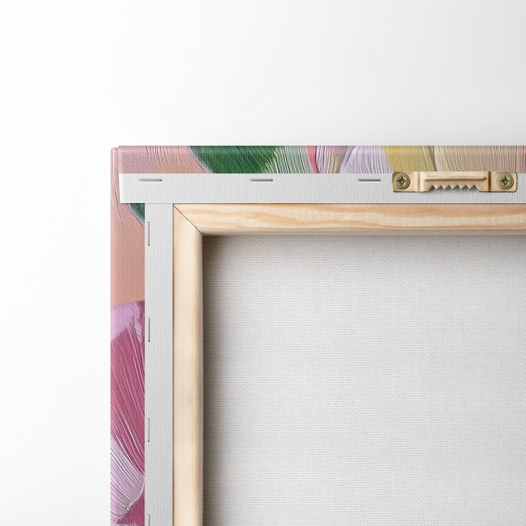 Het schilderij kan direct na ontvangst worden opgehangen. Het schilderij wordt opgespannen op een 2 cm breed houten spieraam.