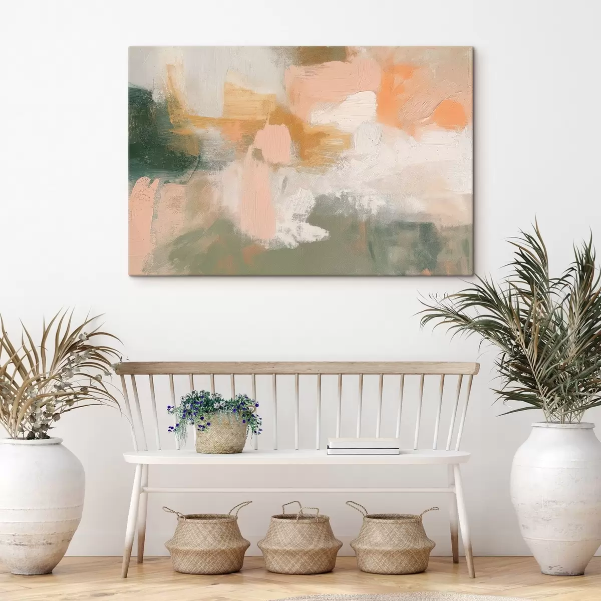 Het schilderij kan direct na ontvangst worden opgehangen. Het schilderij wordt opgespannen op een 2 cm breed houten spieraam.