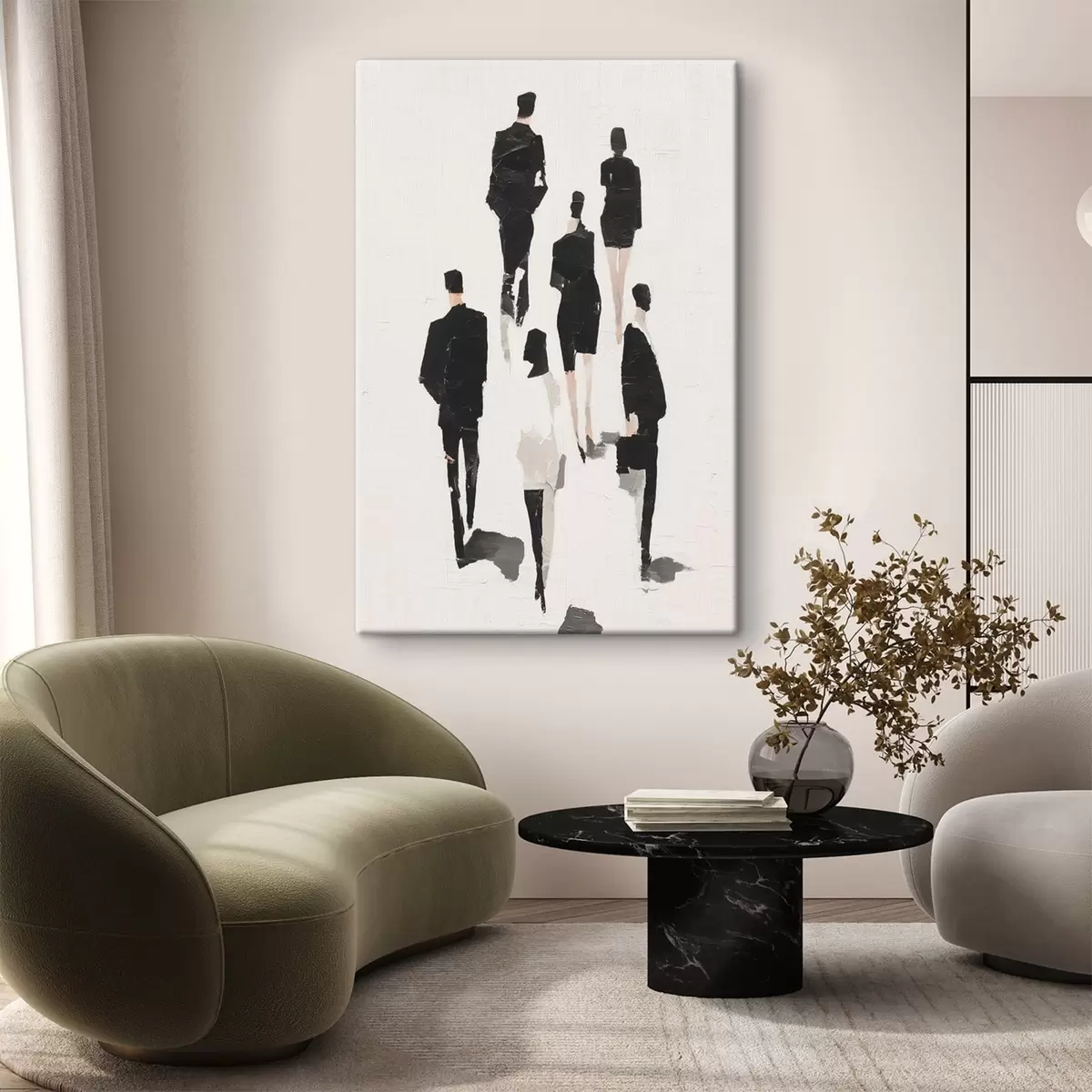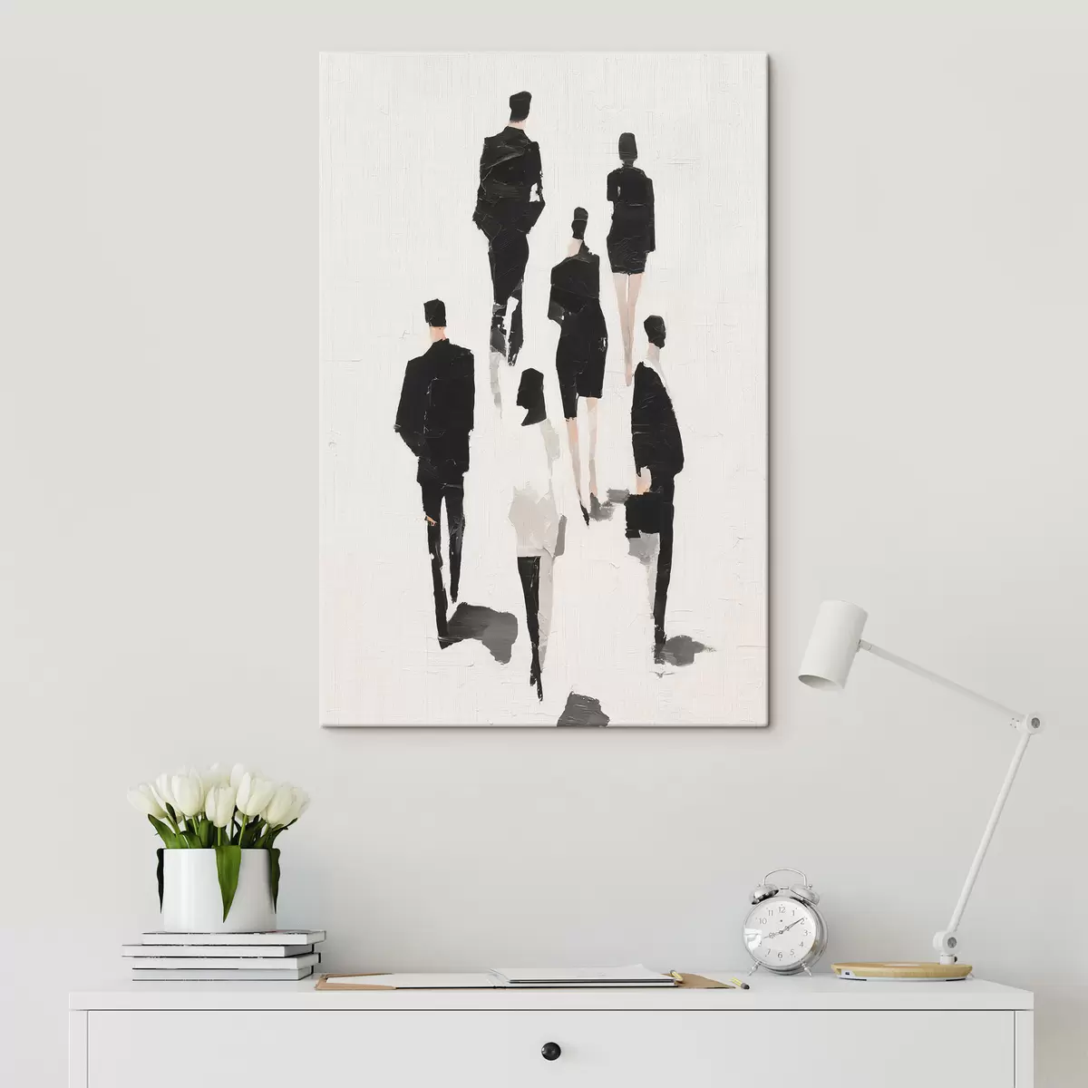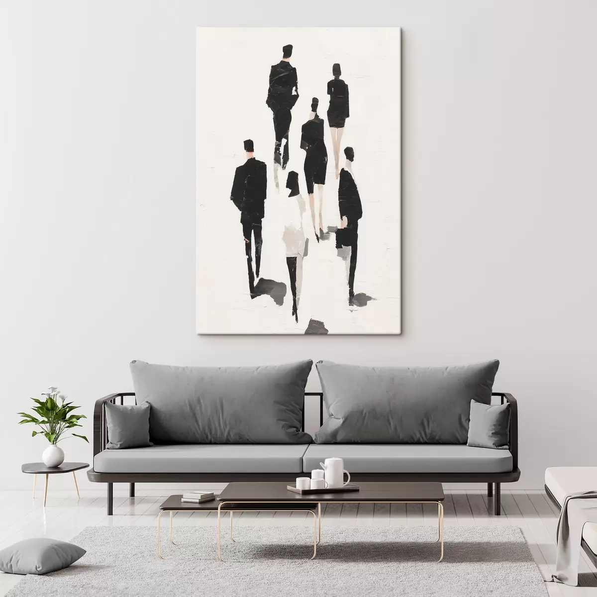 Schilderijen Een abstractie met silhouetten van mensen s48667