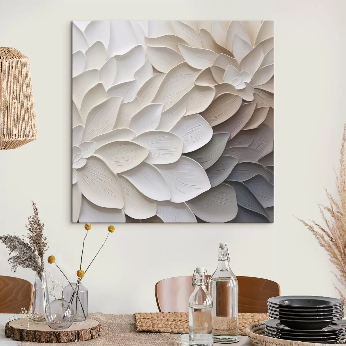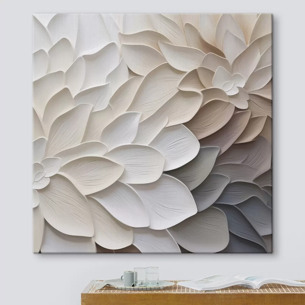 Er zijn drie soorten materiaal te bestellen: Economic Canvas - een dicht en duurzaam materiaal voor digitaal printen, identiek aan schildersdoek, waterdicht oppervlak, realistische weergave van details, materiaal met gemiddelde korrel. Premium Canvas - de textuur lijkt op die van schildersdoek (verweven kleine draden). Zachte, gedetailleerde reproductie van de afbeelding op een mat oppervlak. Eco-Premium - hoogwaardige 100% katoenen stof. Dankzij de natuurlijke katoenvezels is het materiaal duurzaam en slijtvast. Uitstekende kleurweergave en detail.