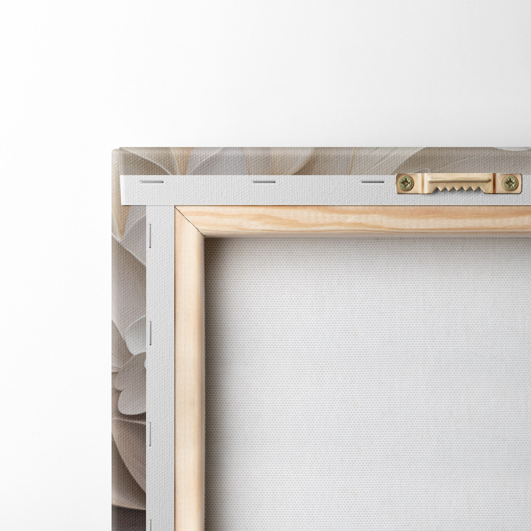 Om het doek op te spannen op spielatten zonder de afbeelding te beschadigen, gebruiken we gespiegeld beeld.