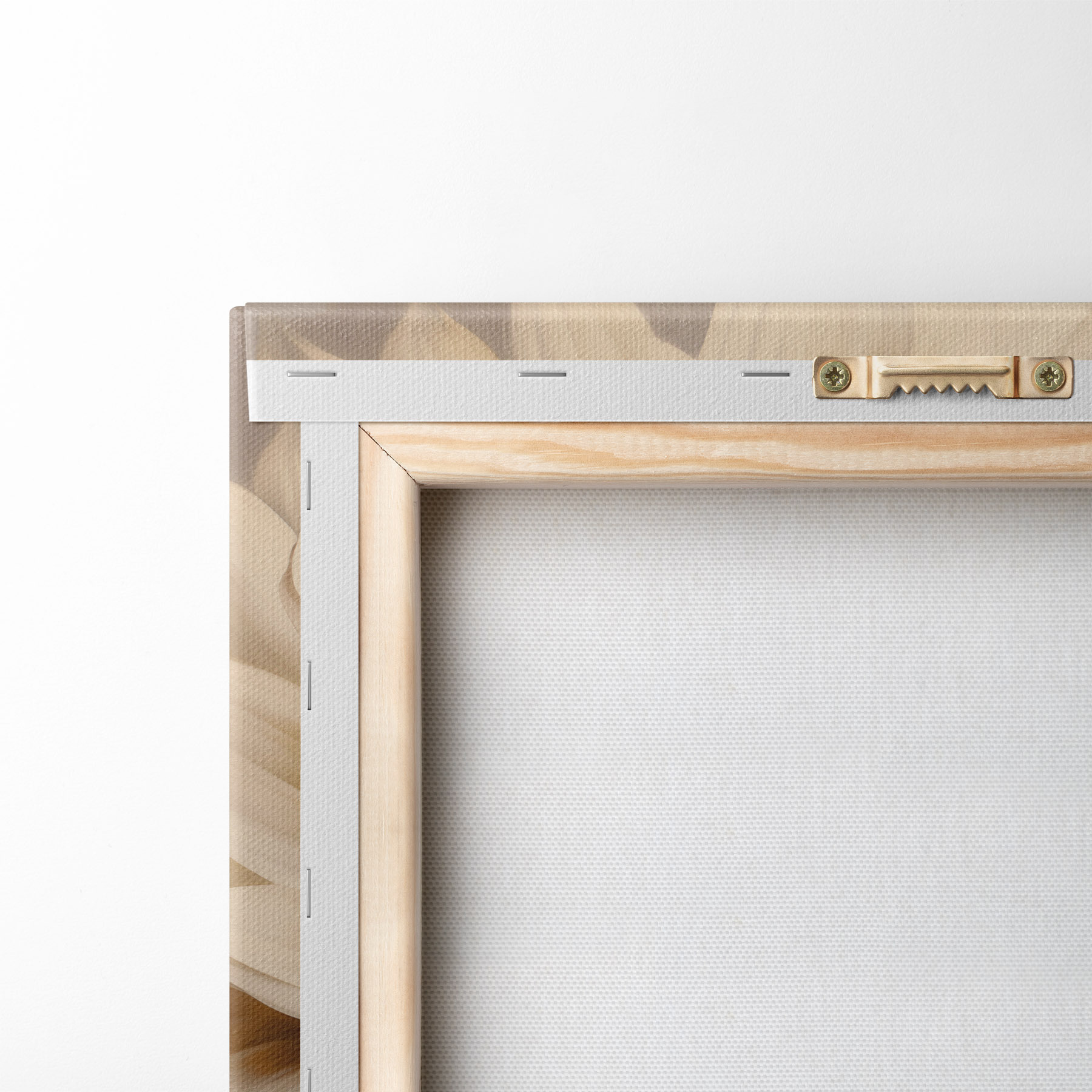 Om het doek op te spannen op spielatten zonder de afbeelding te beschadigen, gebruiken we gespiegeld beeld.