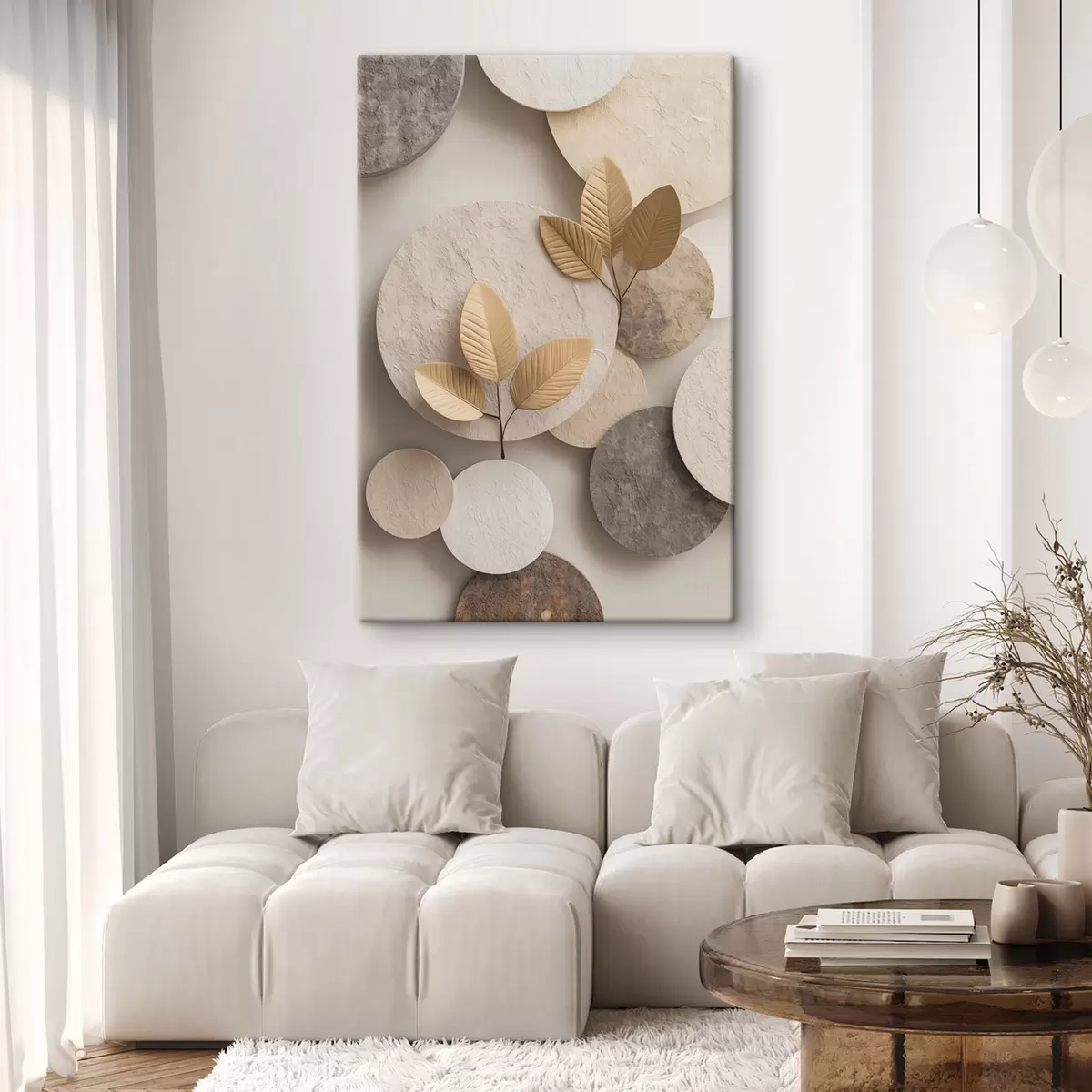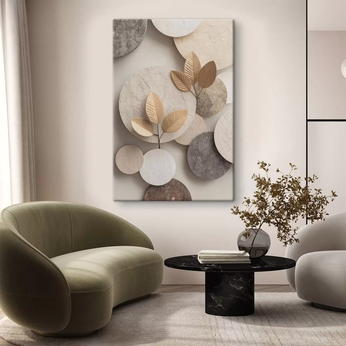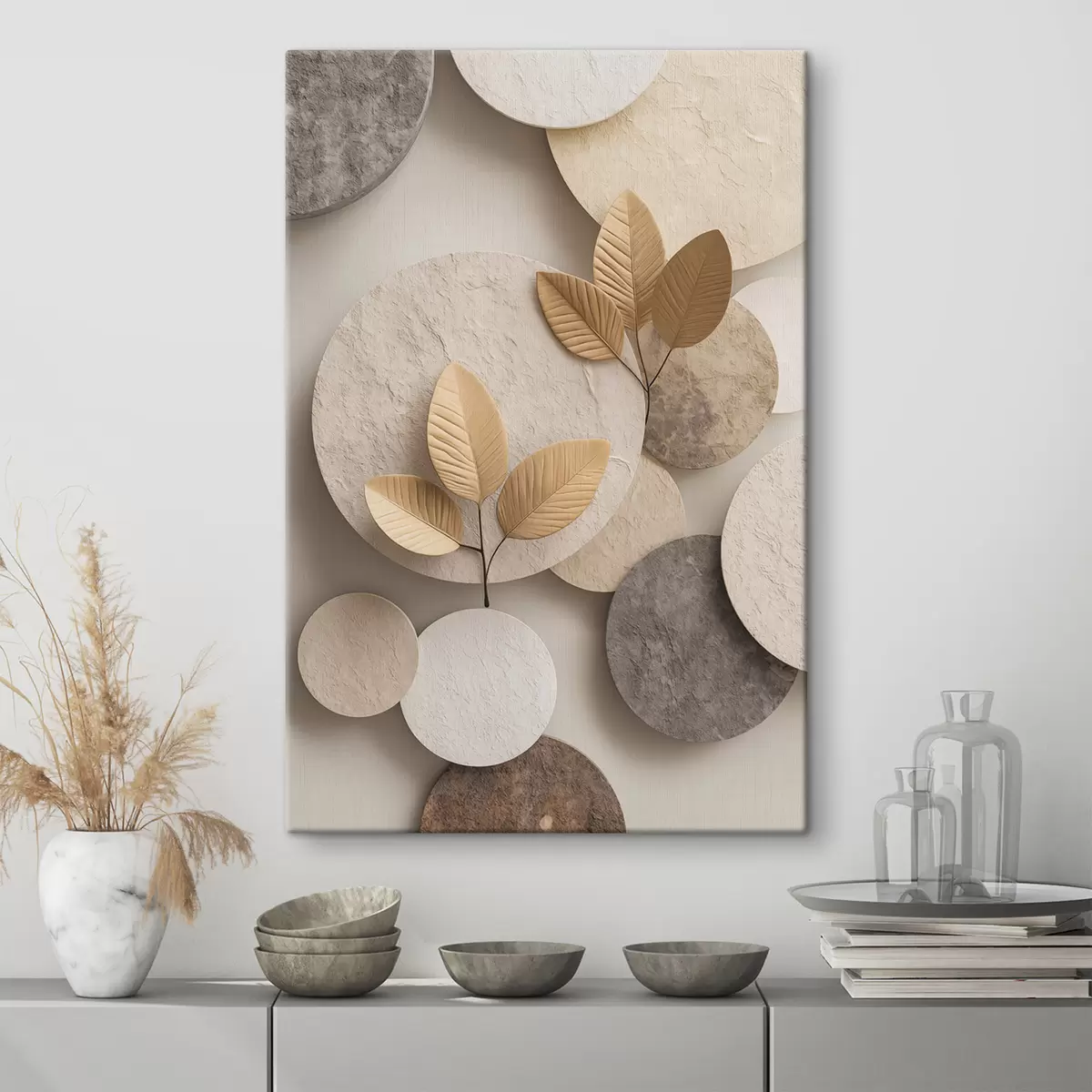 Schilderij Een compositie met bladeren en cirkels Art. s48692