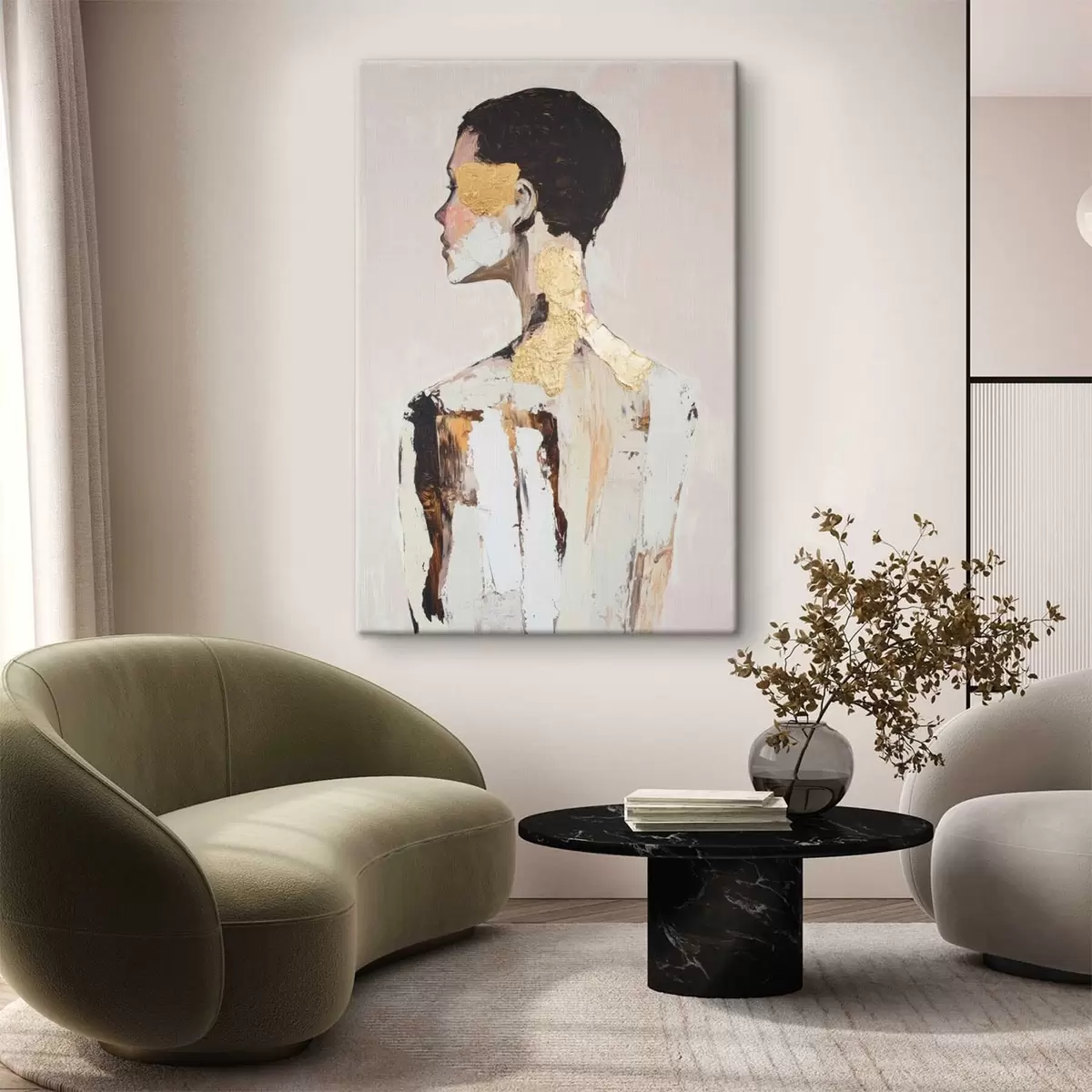 Het schilderij kan direct na ontvangst worden opgehangen. Het schilderij wordt opgespannen op een 2 cm breed houten spieraam.