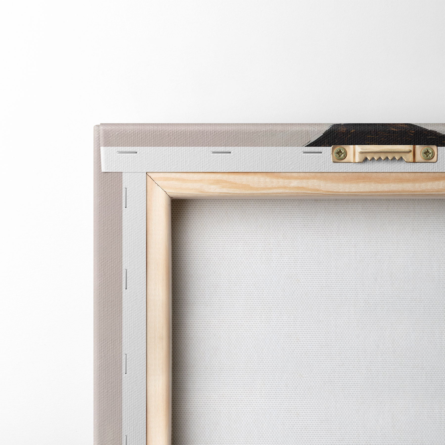 Om het doek op te spannen op spielatten zonder de afbeelding te beschadigen, gebruiken we gespiegeld beeld.