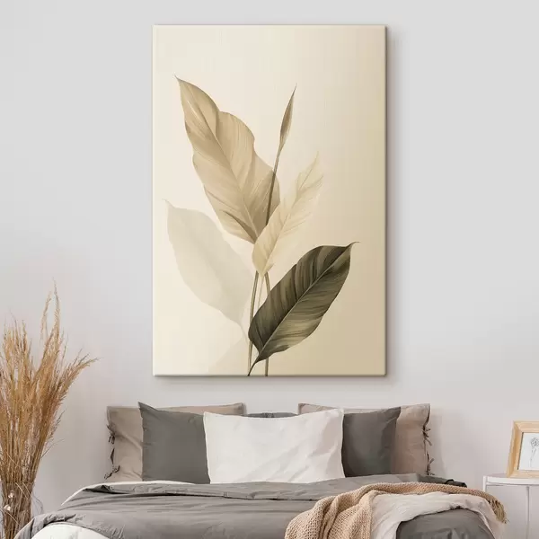 Schilderij Grote tropische bladeren in beige- en bruintinten, lichte achtergrond Art. s48725
