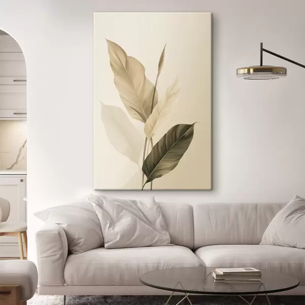 Schilderijen Grote tropische bladeren in beige- en bruintinten, lichte achtergrond s48725