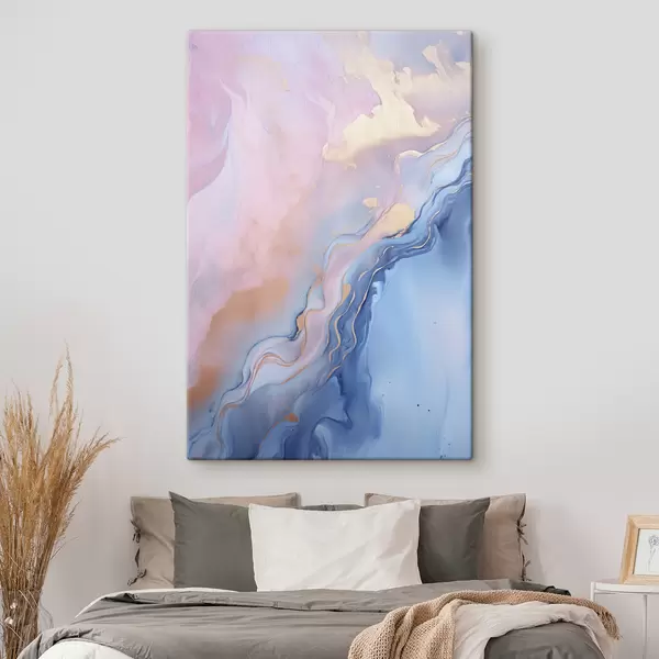 Schilderijen Abstracte, gestructureerde vloeiende kunst met wervelende patronen in roze en blauwe tinten s48729