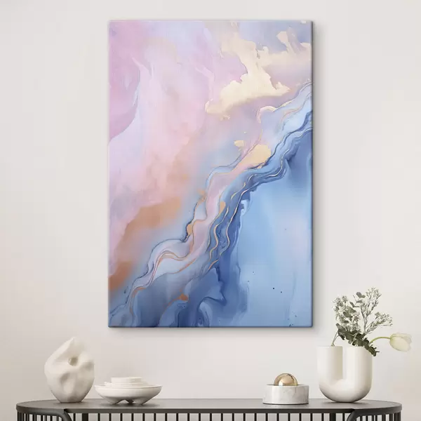Schilderij Abstracte, gestructureerde vloeiende kunst met wervelende patronen in roze en blauwe tinten Art. s48729
