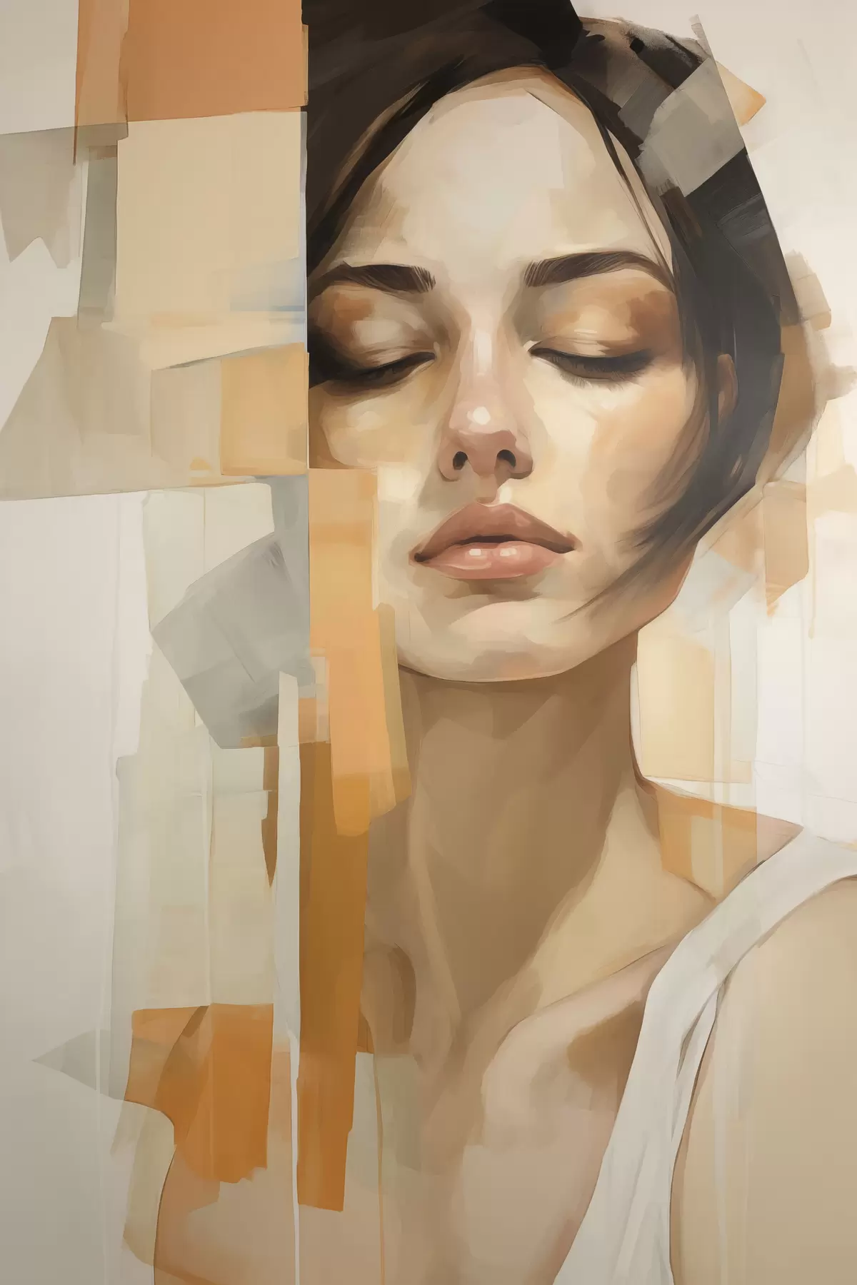 Schilderij Abstract vrouwportret met oranje en beige vormen Art. s48736