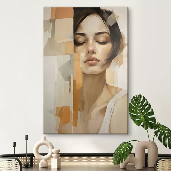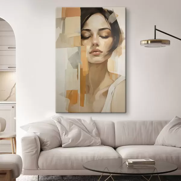 Schilderijen Abstract vrouwportret met oranje en beige vormen s48736