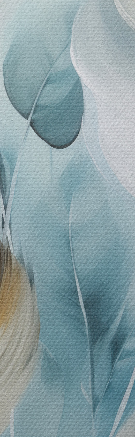 Schilderijen Grote, zachte veren in blauw- en wittinten met delicate beige blaadjes s48750