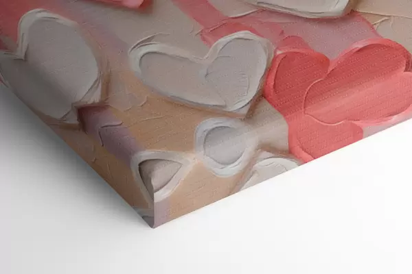 Schilderij Hartjes in verschillende tinten perzik en roze, uitgevoerd in een gestructureerde, geschilderde stijl Art. s48751